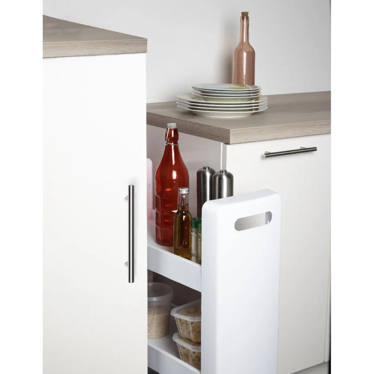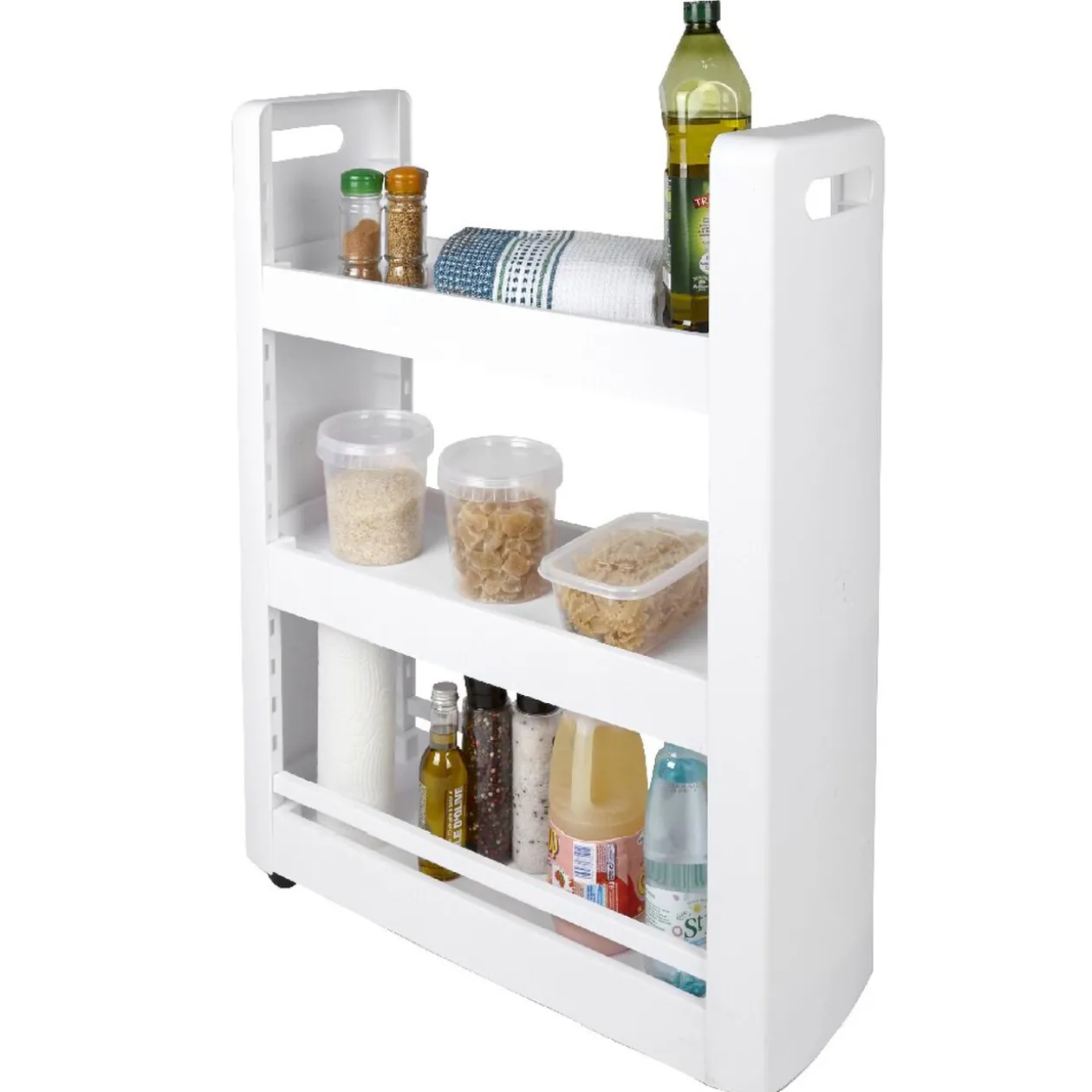 Mobile et légère, cette desserte se glisse parfaitement entre deux meubles afin de tout avoir à porteée de main. Elle s’utilise dans toutes les pièces de la maison : dans la cuisine pour les ingredients ou récipients, dans la buanderie pour les produits d’entretien ou encore dans la salle de bain pour les produits cosmétiques.