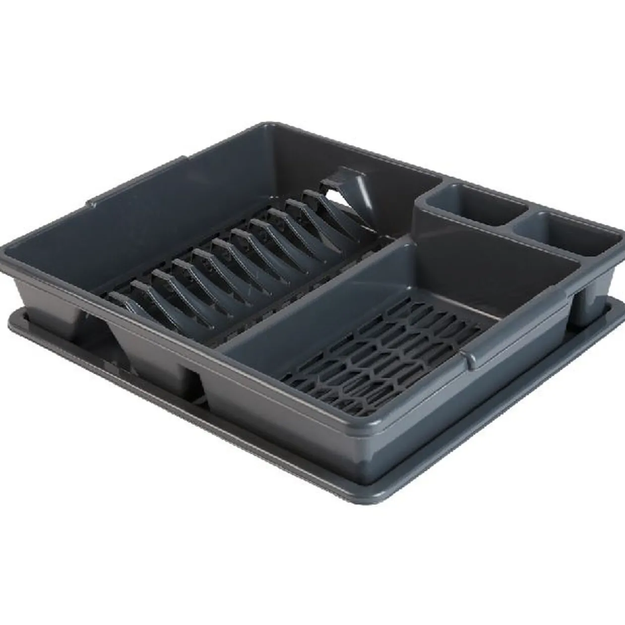 Egouttoir à vaisselle avec plateau, dim. 45x37x9 cm, plastique. Coloris : gris clair ou foncé, disponibilité selon arrivage.