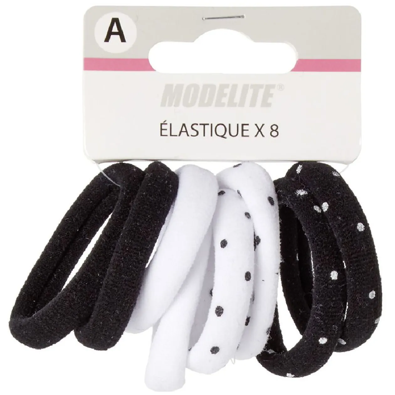 Lot de 8 élastiques en mousse assortis blancs et noirs.