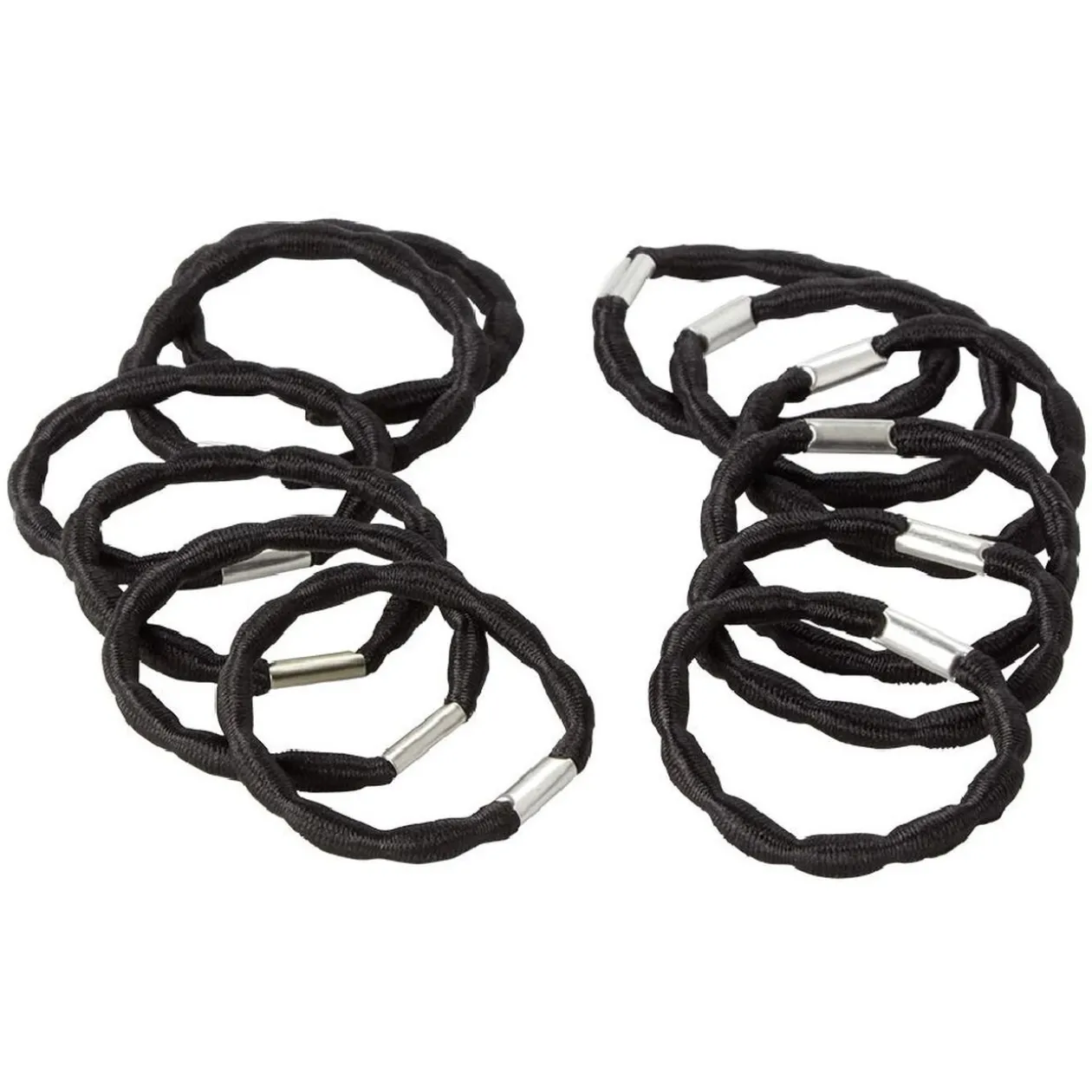 Lot de 12 élastiques en latex ondulé noir avec embout en métal.
