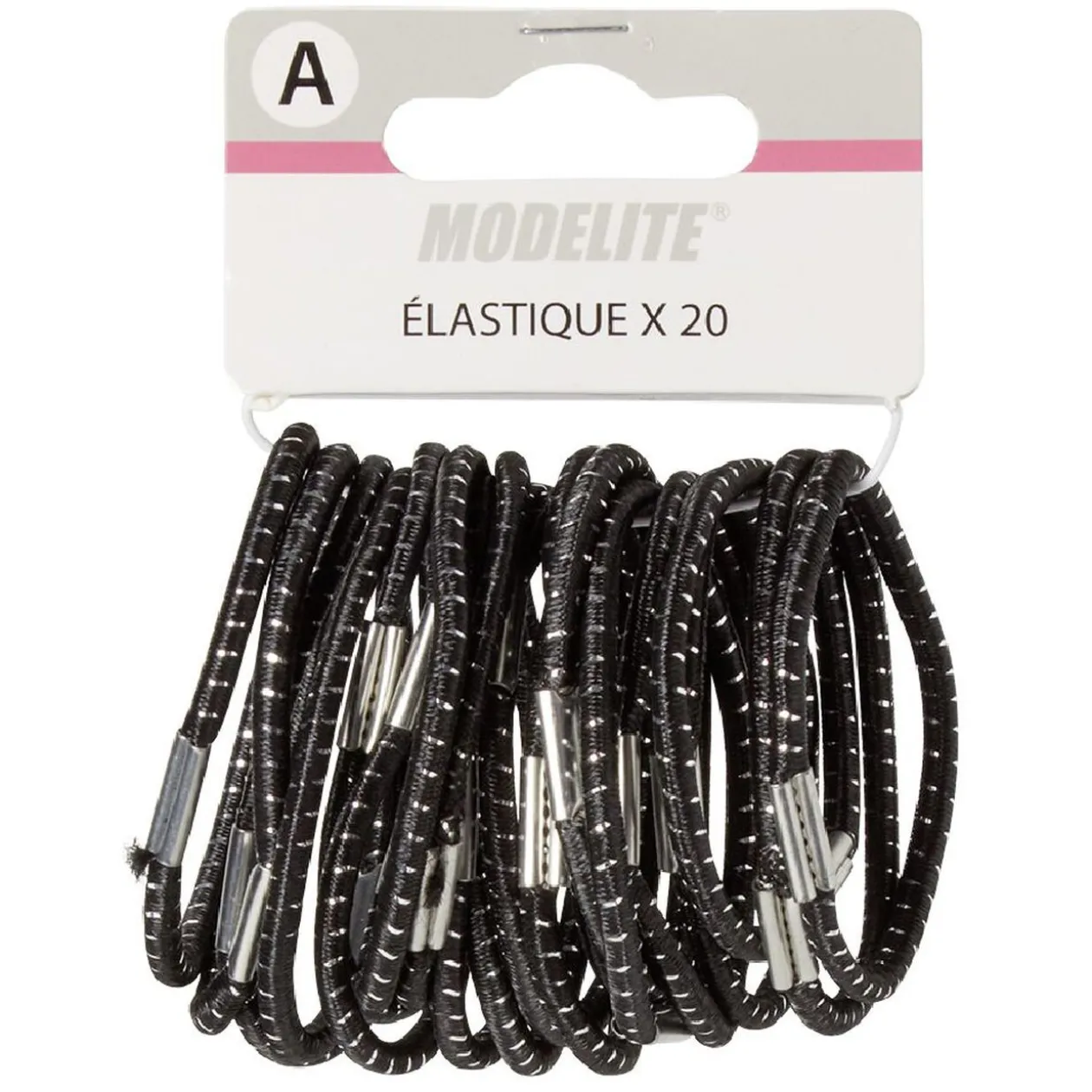 Lot de 20 élastiques noirs décorés de fil métallique brillant avec embout en métal.