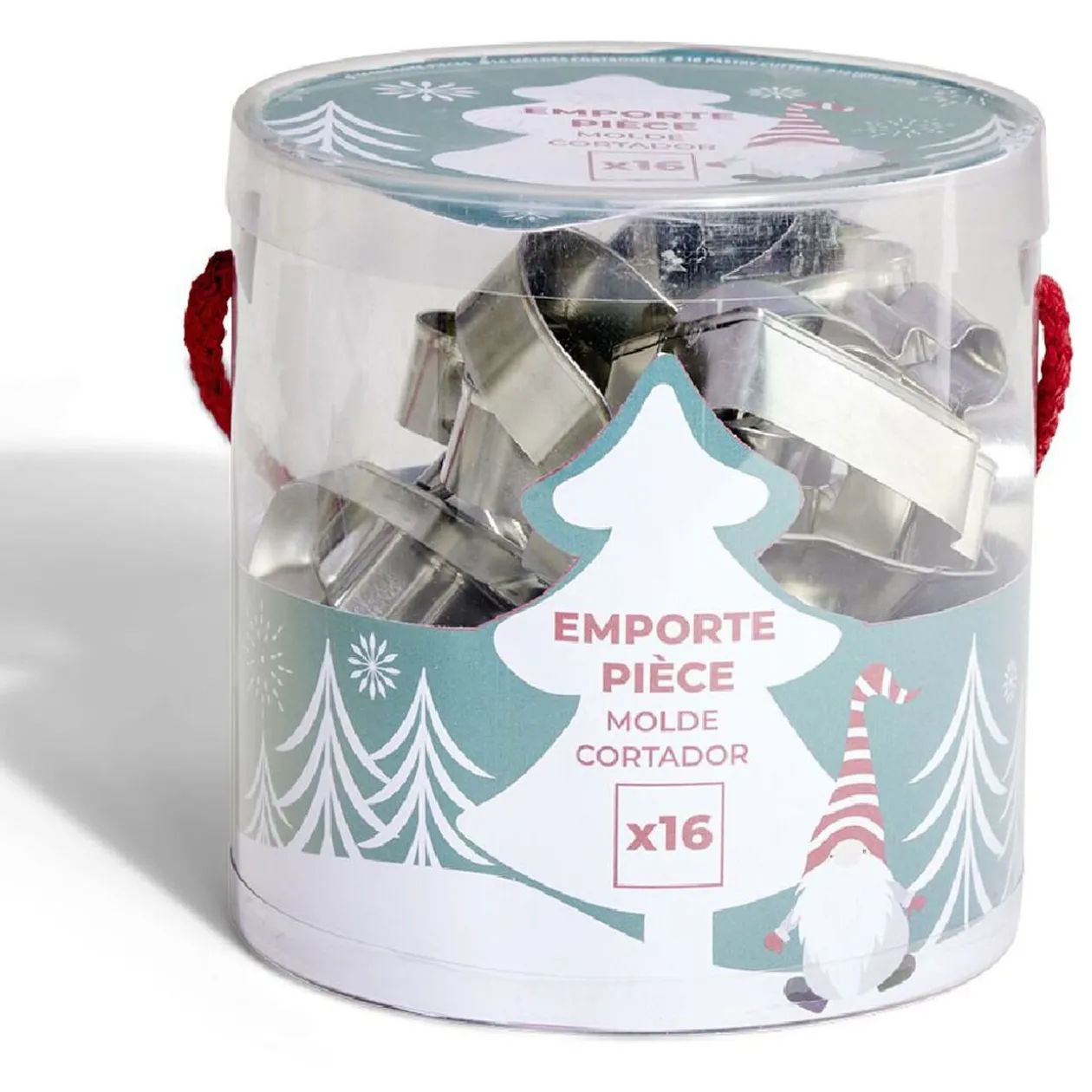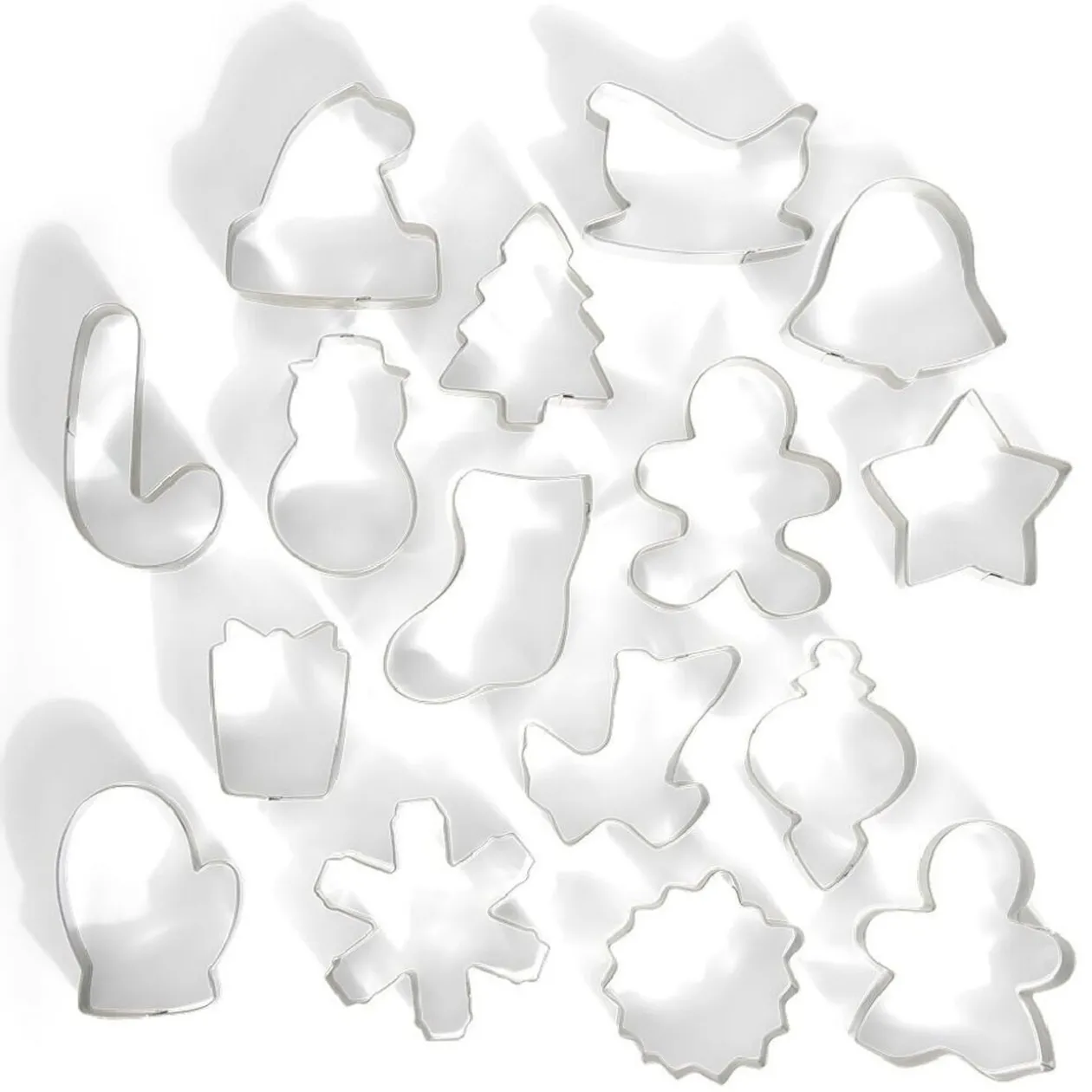 Set de 16 emporte-pièces pour réaliser des biscuits aux formes variées pour les fêtes de fin d’année.