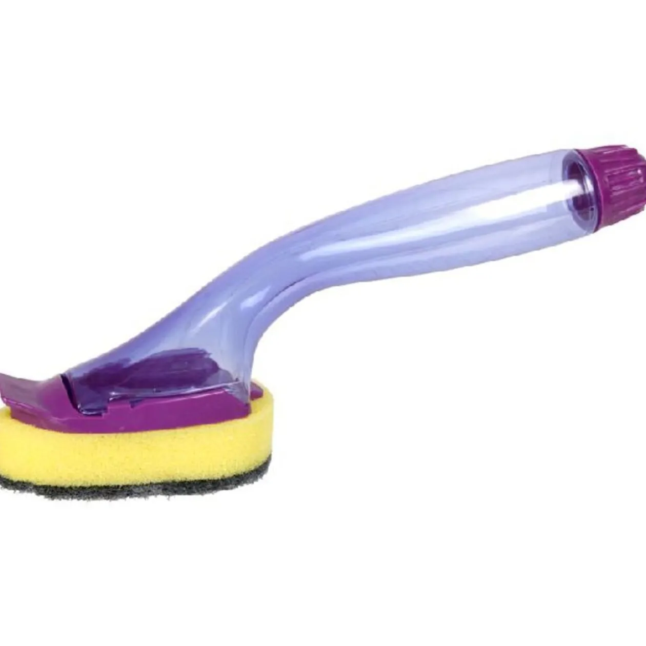 Eponge grattoir avec réservoir pour liquide vaisselle (15cl.), plastique. Diff. coloris, disponibilité selon arrivage.