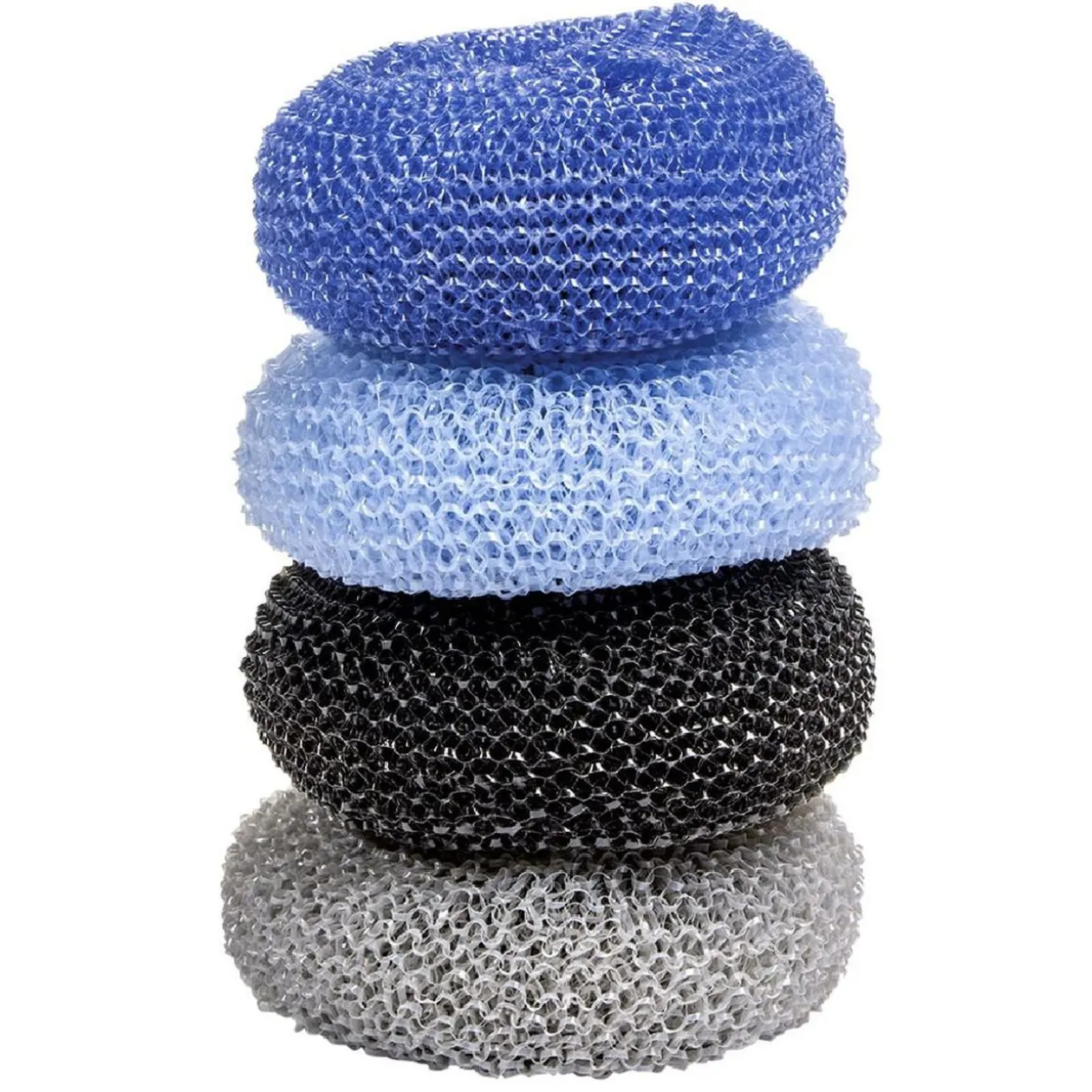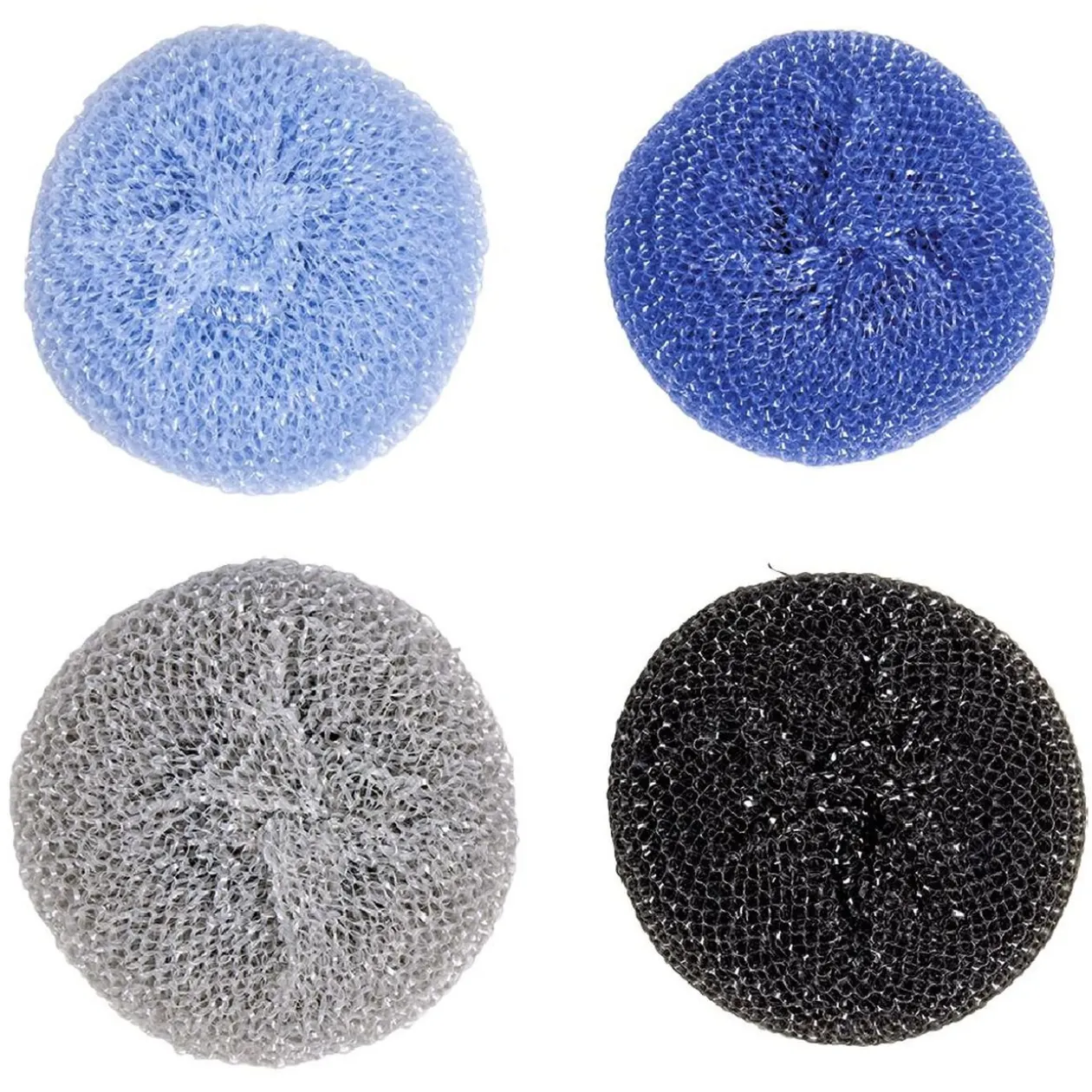 Lot de 4 tampons à récurer, idéal pour nettoyer l’inox, la porcelaine ou l’émail sans rayer.