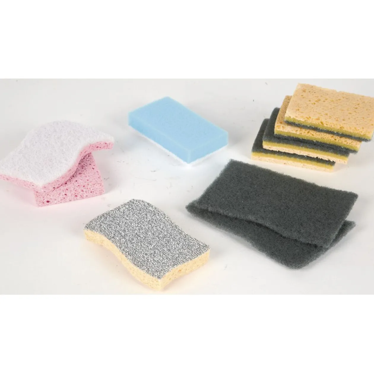 Ce lot de 10 éponges comprend: 4 éponges végétales grattantes, 2 tampons à récurer, 1éponge végétal vitrocéramique,pour un nettoyage complet de votre cuisine ainsi que : 1 éponge végétale grattante multiusage, 1 éponge végétale multiusage et 1 éponge synthétique grattante pour le nettoyage de votre salle de bain.