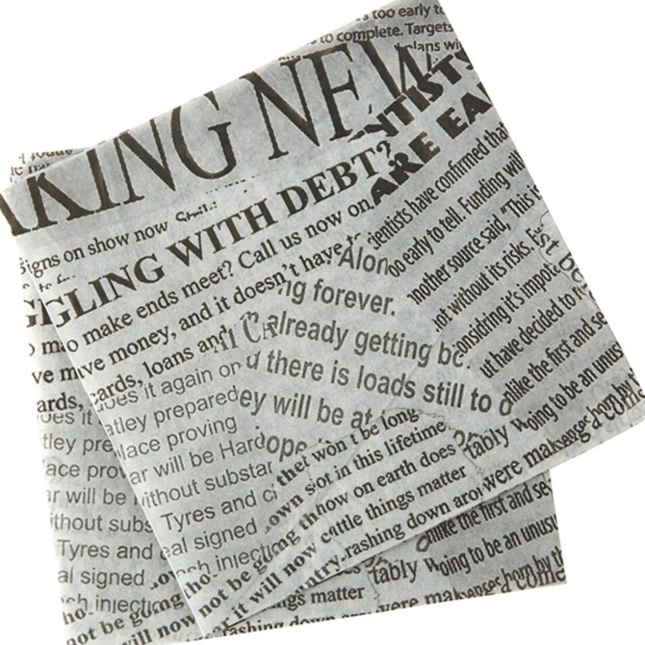 20 feuilles de papier absorbant sulfurisé design journal, dim. 30×30 cm.