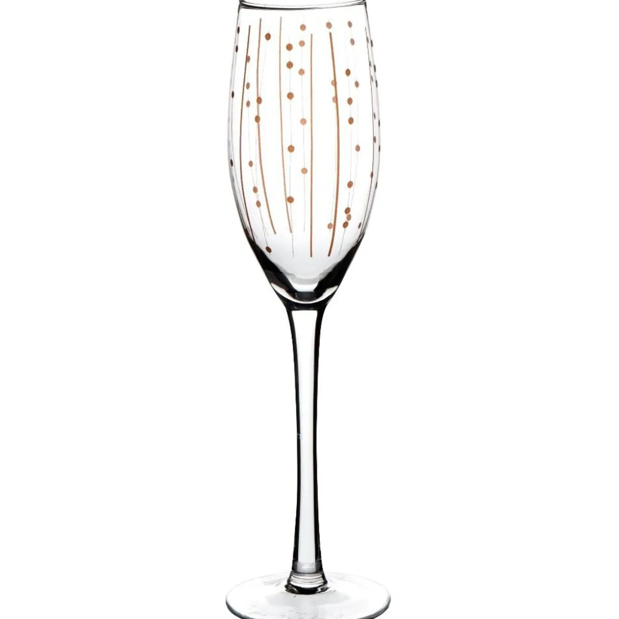 Flûte à champagne à pois et rayures cuivrées, idéale pour apporter une touche chaude et raffinée à votre décoration de table.