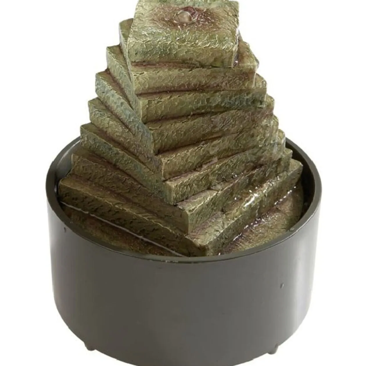 Fontaine décorative qui évoque une cascade d’eau. Elle fonctionne avec 2 piles LR06 non fournies et existe en diff. modèles, disponibilité selon arrivage..