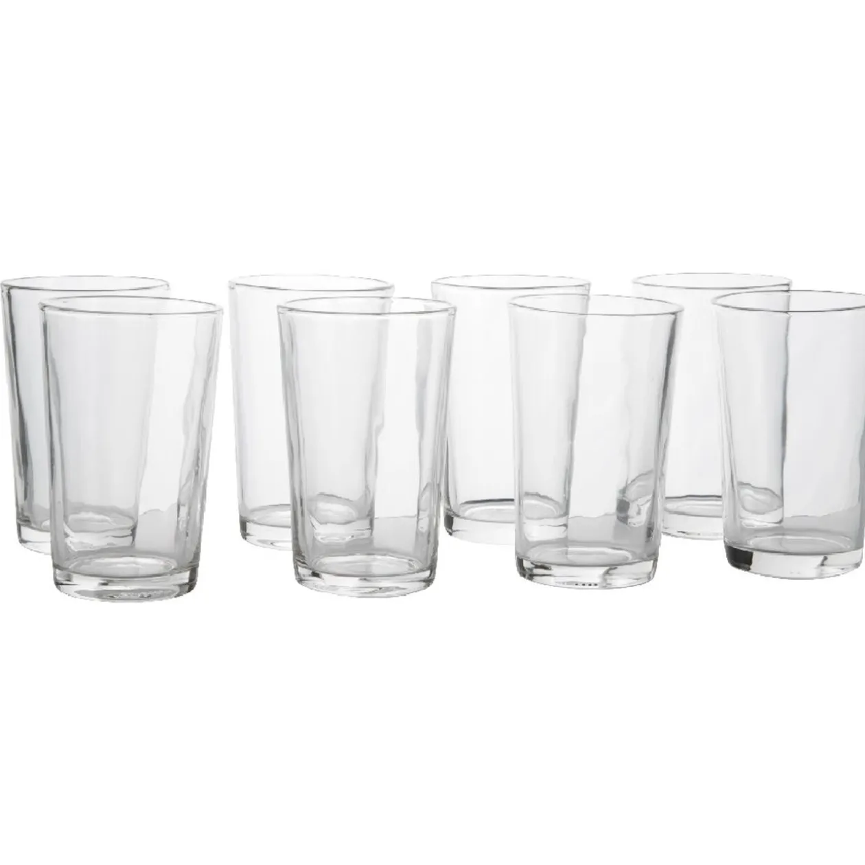 Lot de 8 gobelets en verre transparent d’une contenance de 22 cl.