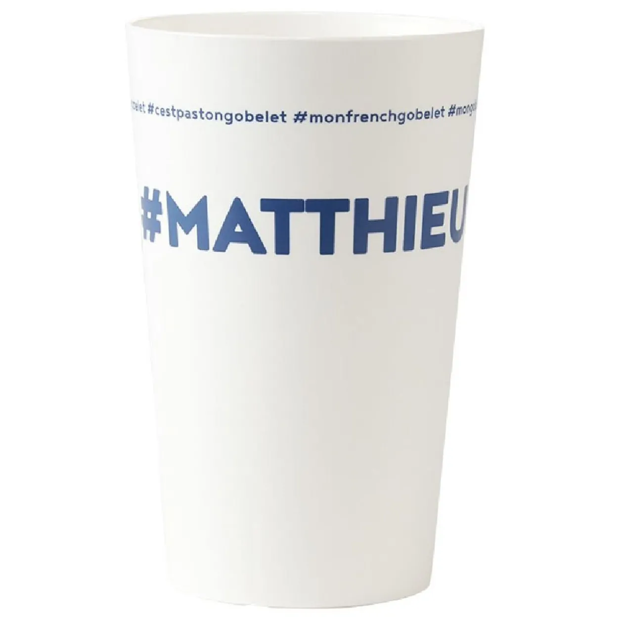 Gobelet #MATTHIEU en plastique blanc et bleu. Existe en différents prénoms.