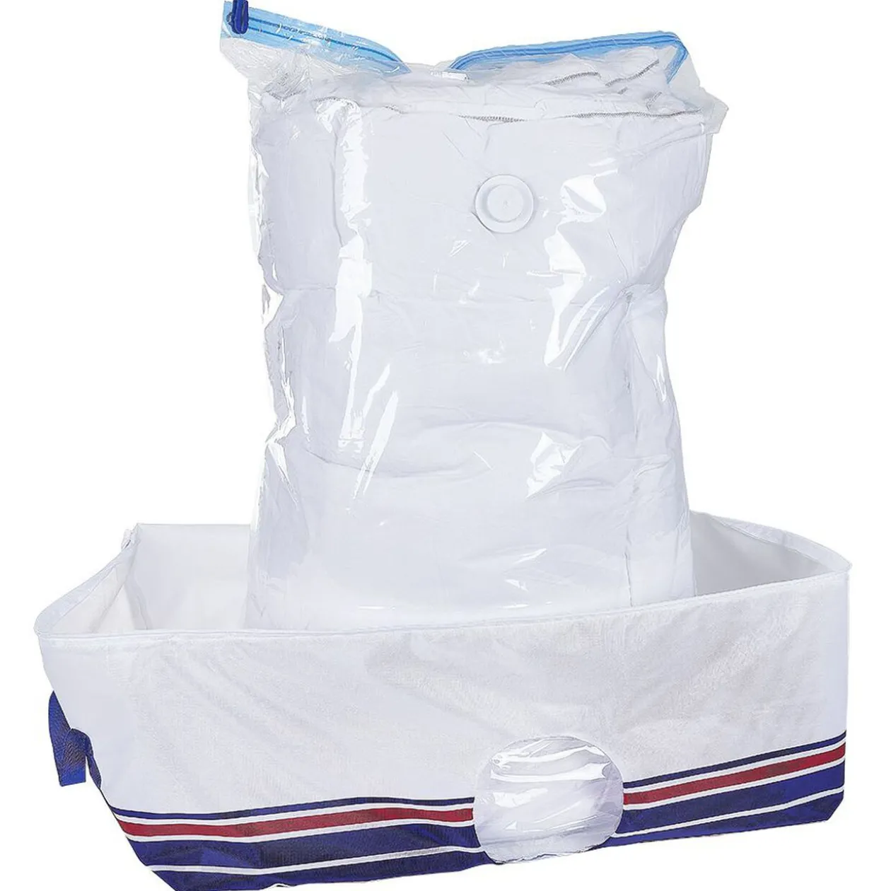 Vous n’avez plus de place pour ranger vos couettes et vos vêtements ? Optez pour cet ensemble housse de rangement et housse vide air, vous gagnerez 70 % de place !