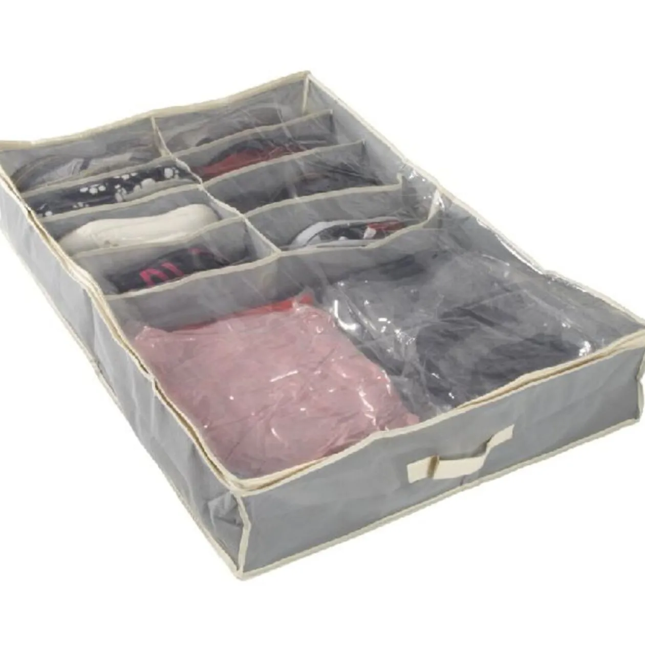 Housse de rangement dessous de lit, dim. 90x60x15 cm, et 3 sacs « vide-air » dim. 50×65 cm.