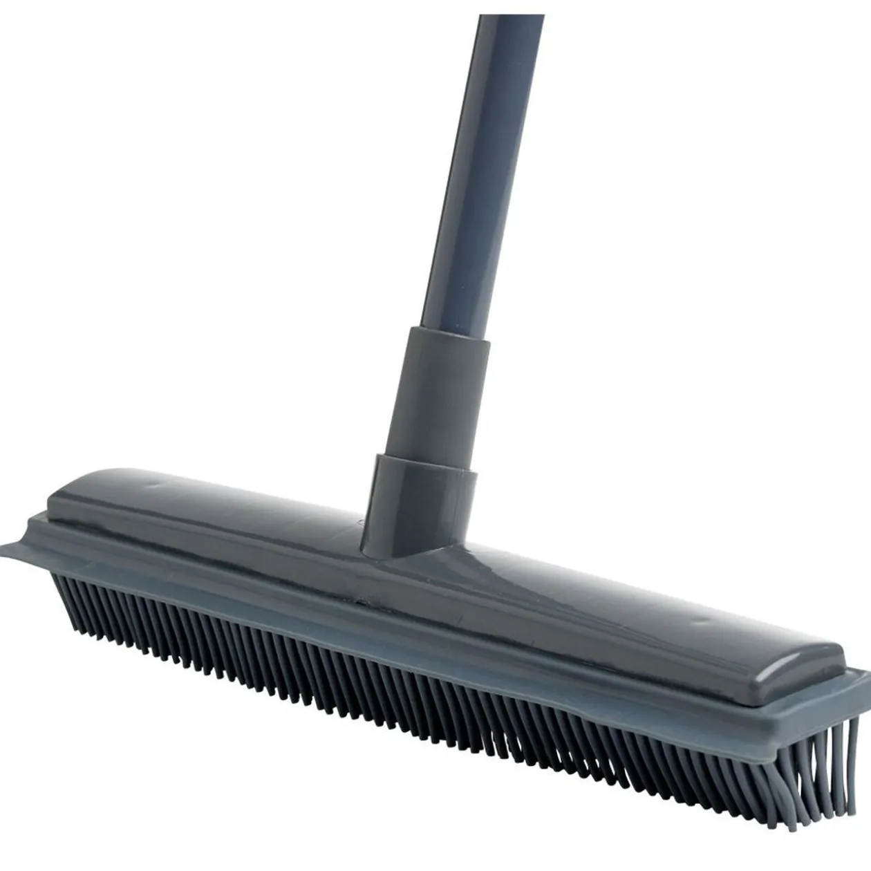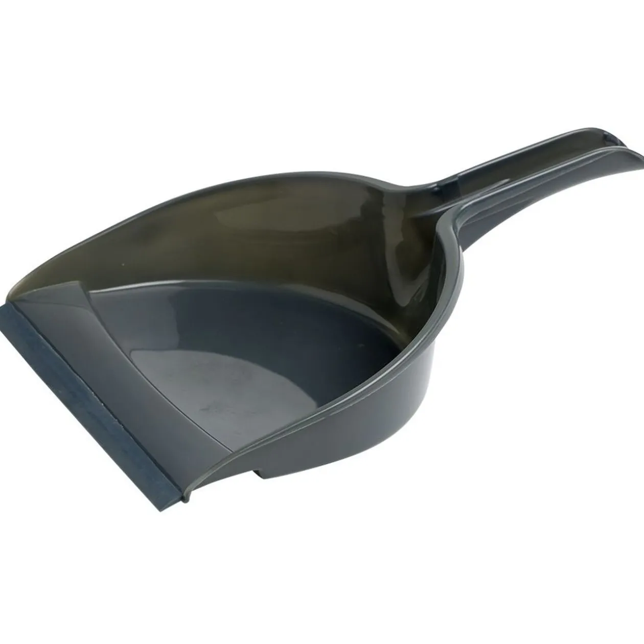 Set de balayage comprenant un balai et pelle avec balayette en pastique gris.
