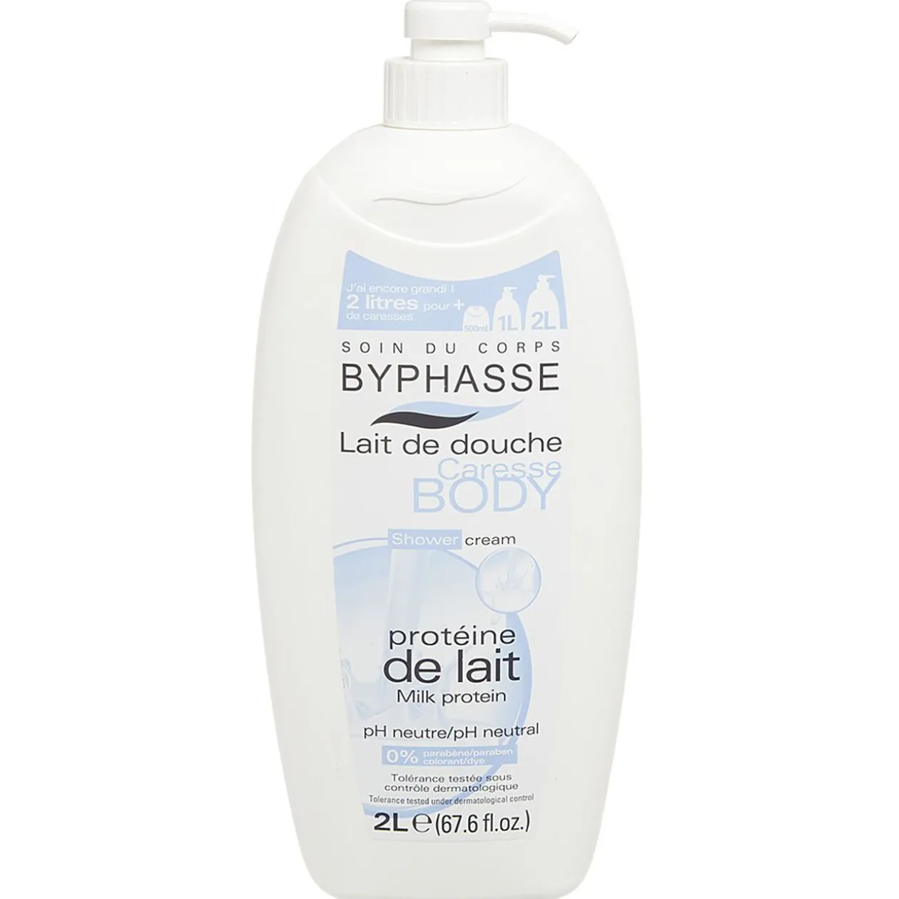 Lait de douche Caresse Byphasse aux protéines de lait.