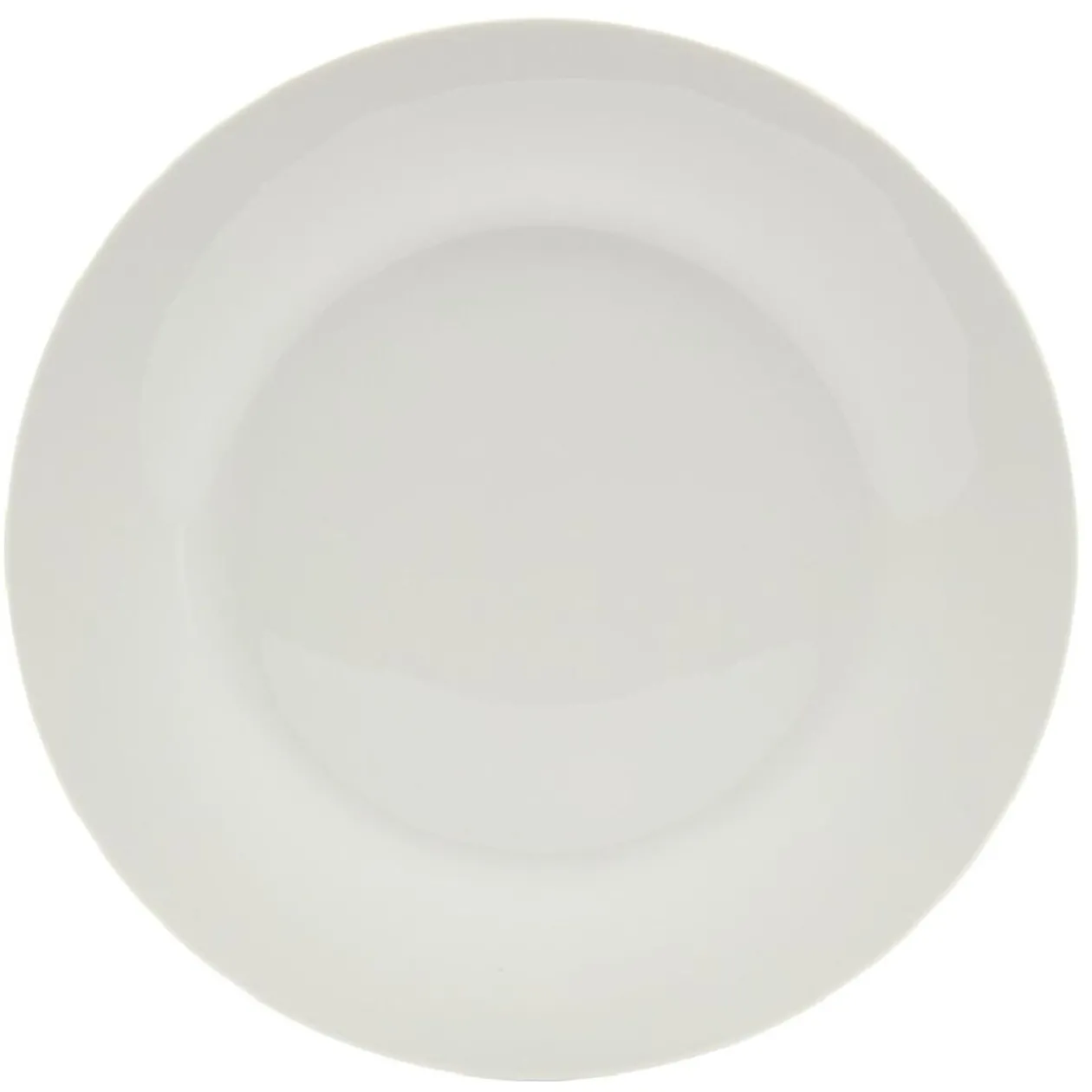 Lot de 10 assiettes plates au style neutre uni blanc.