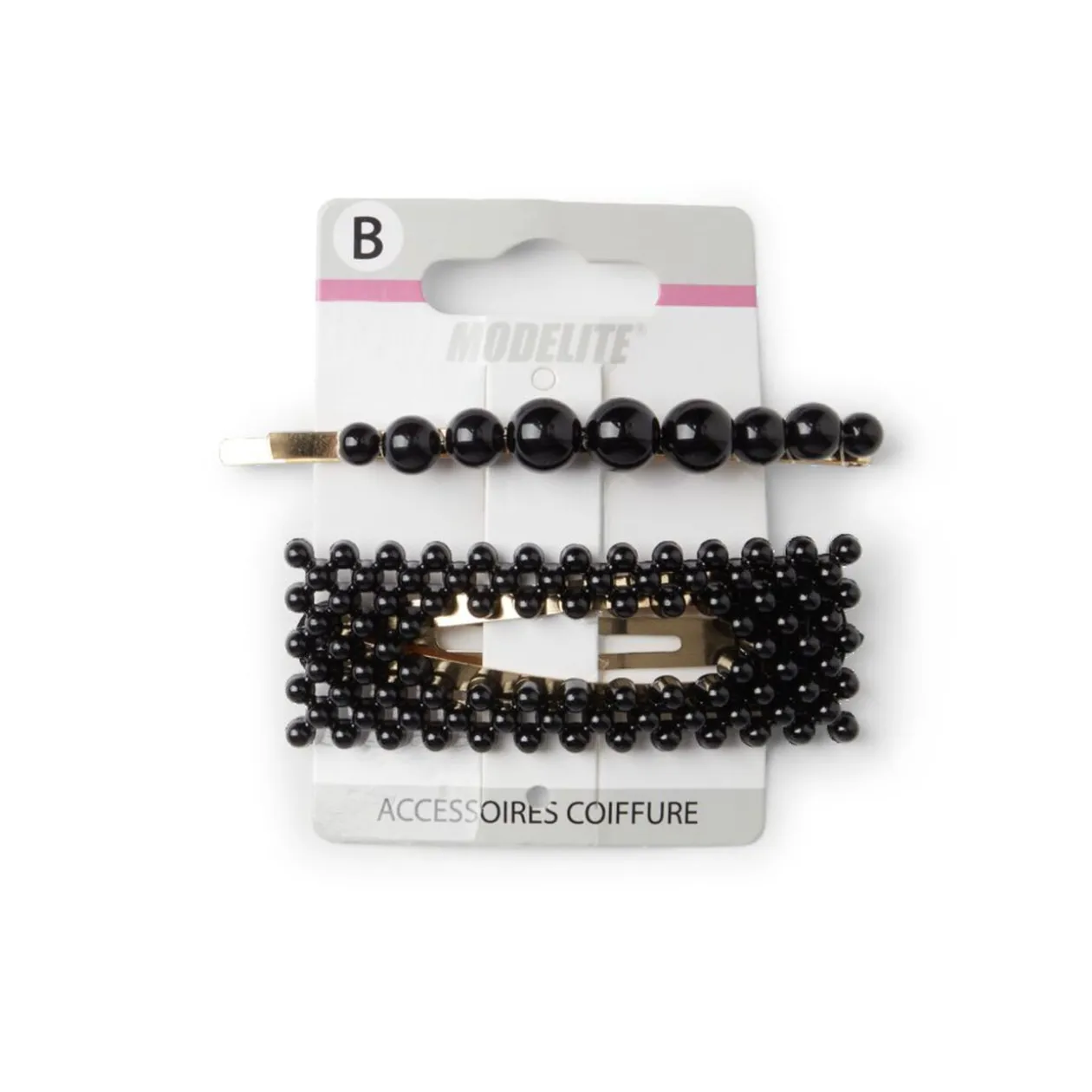 Lot de 2 barrettes à cheveux en métal doré, ornées de perles en plastique noires pour une touche d’élégance intemporelle.