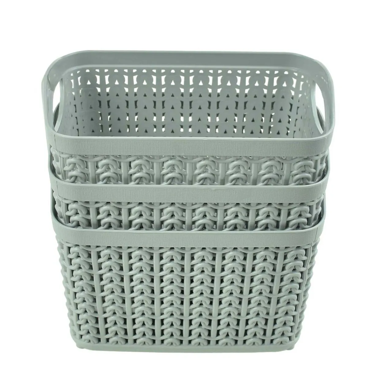 Lot pratique de 3 panières de rangement en polypropylène, parfaites pour organiser petits objets, accessoires de bureau ou produits de beauté.