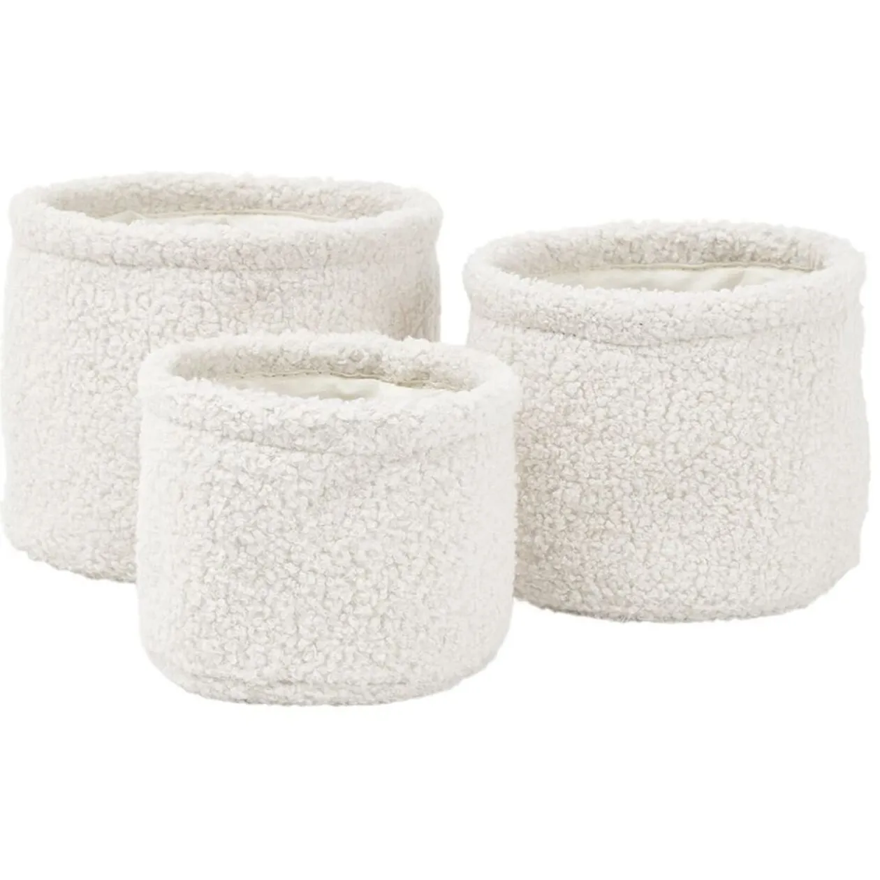 Ce lot de 3 panières rondes effet laine bouclée vous permettra d’organiser vos petits accessoires avec charme sur une étagère ou autre meuble de votre intérieur.