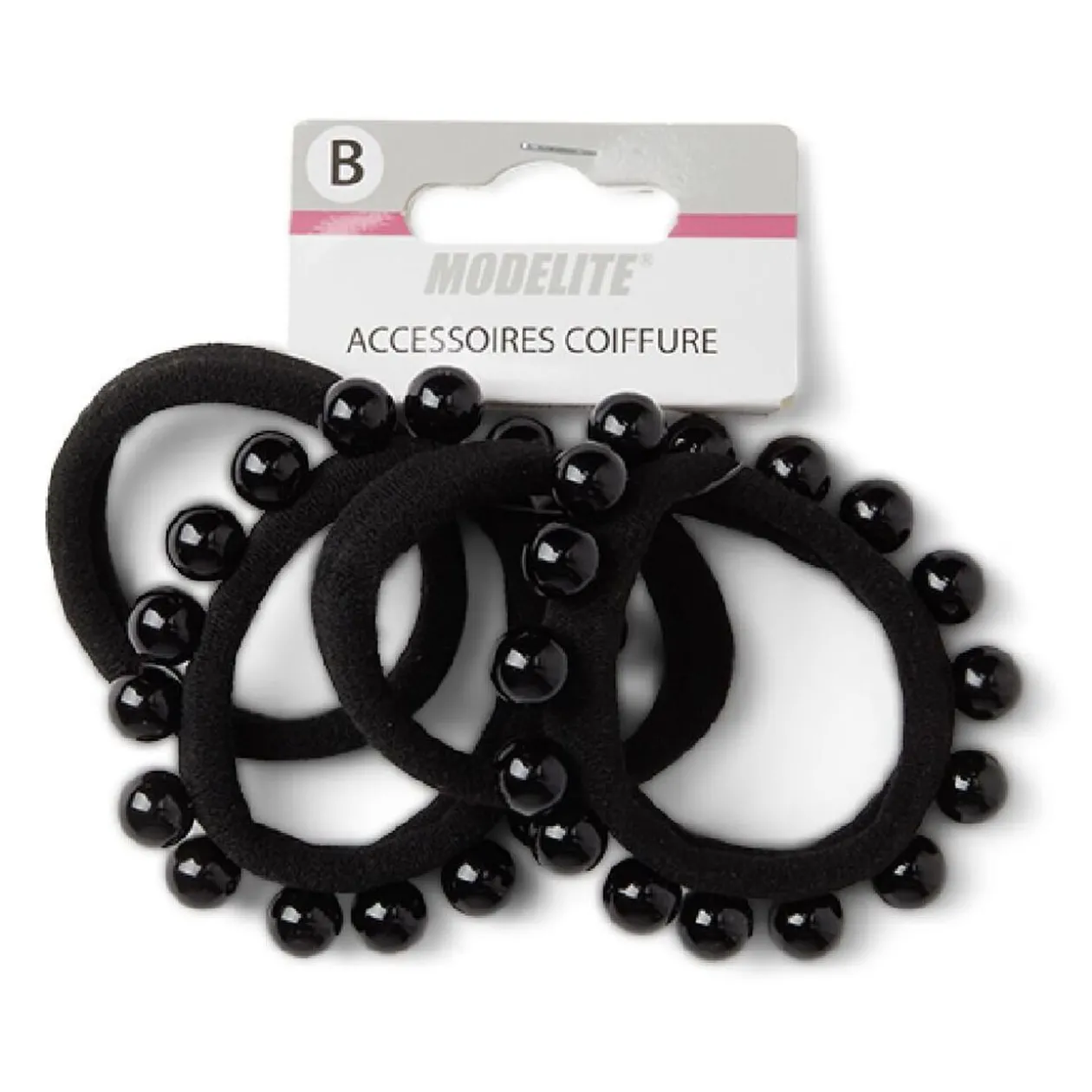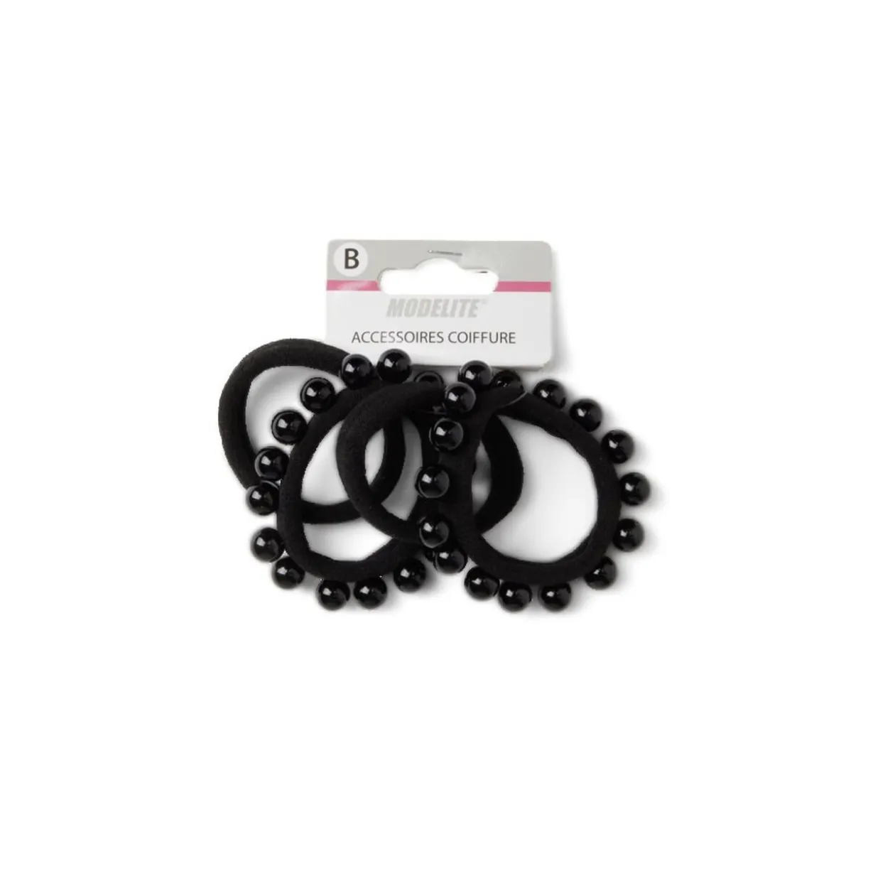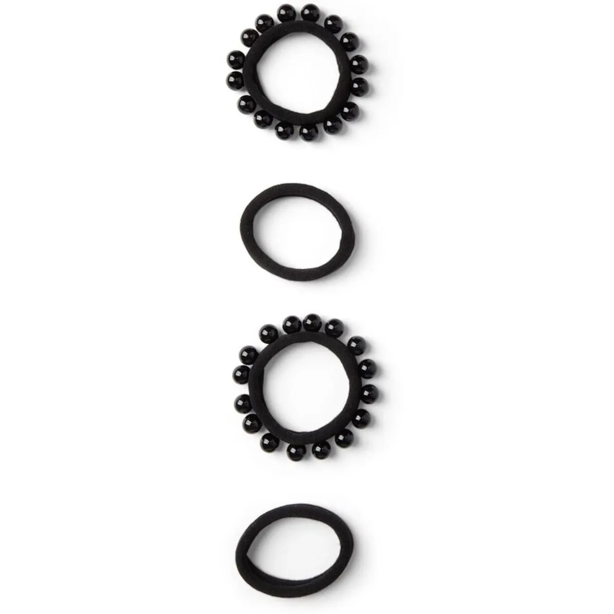 Lot de 4 élastiques à cheveux en polyester noir, comprenant 2 élastiques basiquees et 2 ornés de perles.