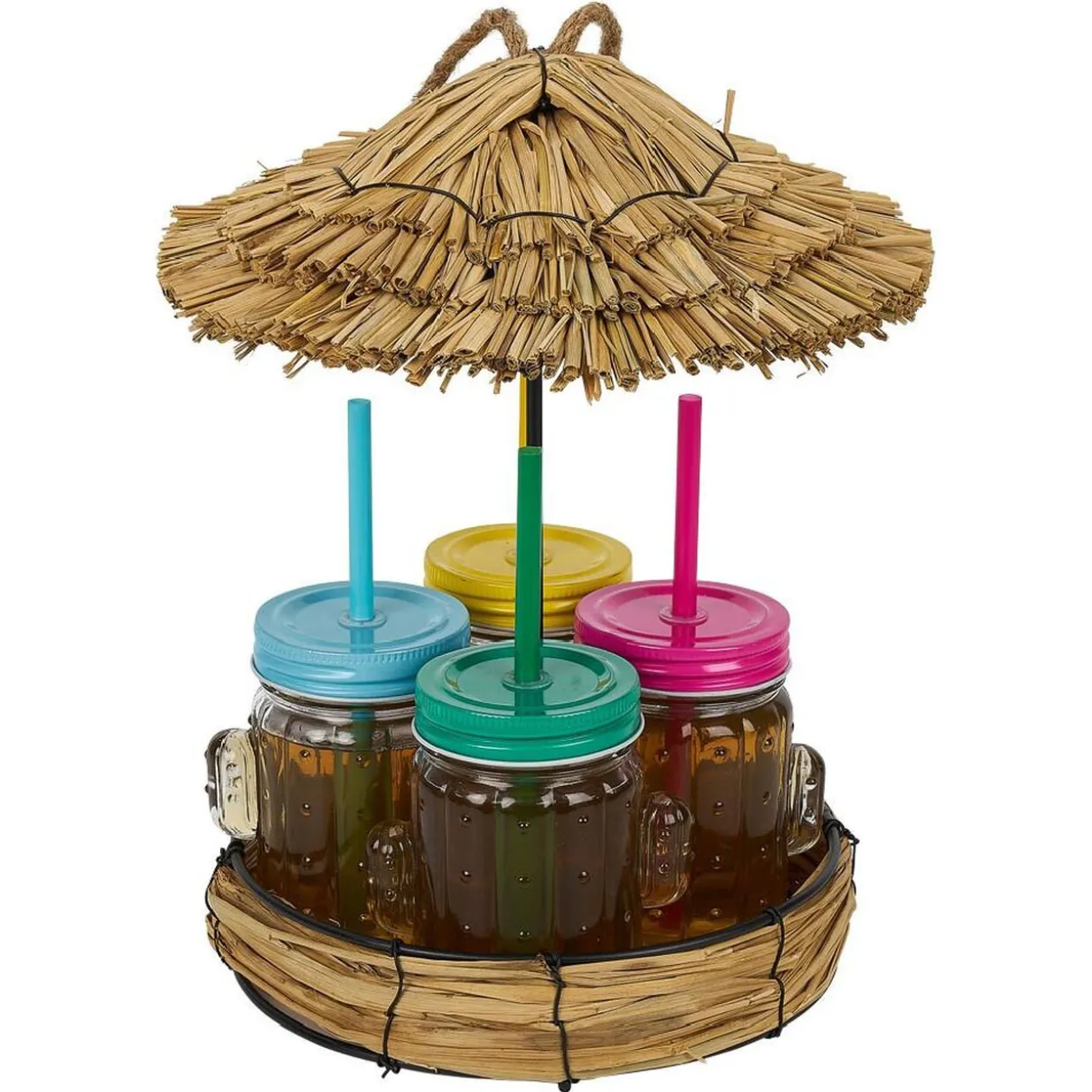 Dégustez vos boissons estivales avec style grâce à ce lot de 4 gobelets à paille en forme de cactus, présentés dans un support inspiré par l’ambiance décontractée des paillotes de plage.