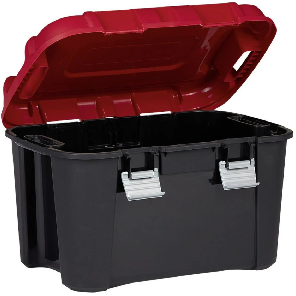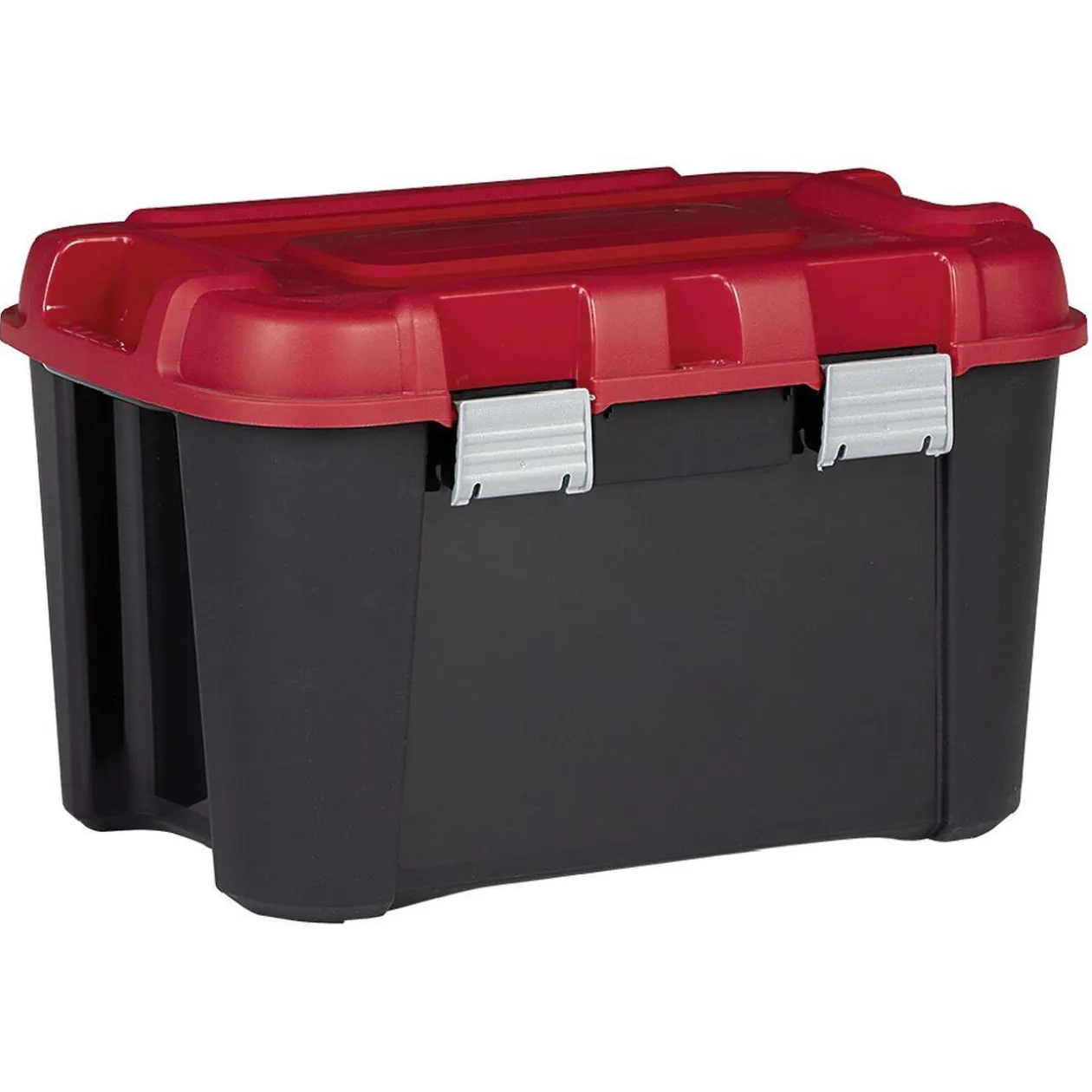 Organisez-vous de façon efficace grâce à ce lot de 2 malles de rangement Totem au coloris rouge et noir.Chaque malle dispose d’une contenance de 60 L et est équipée de :