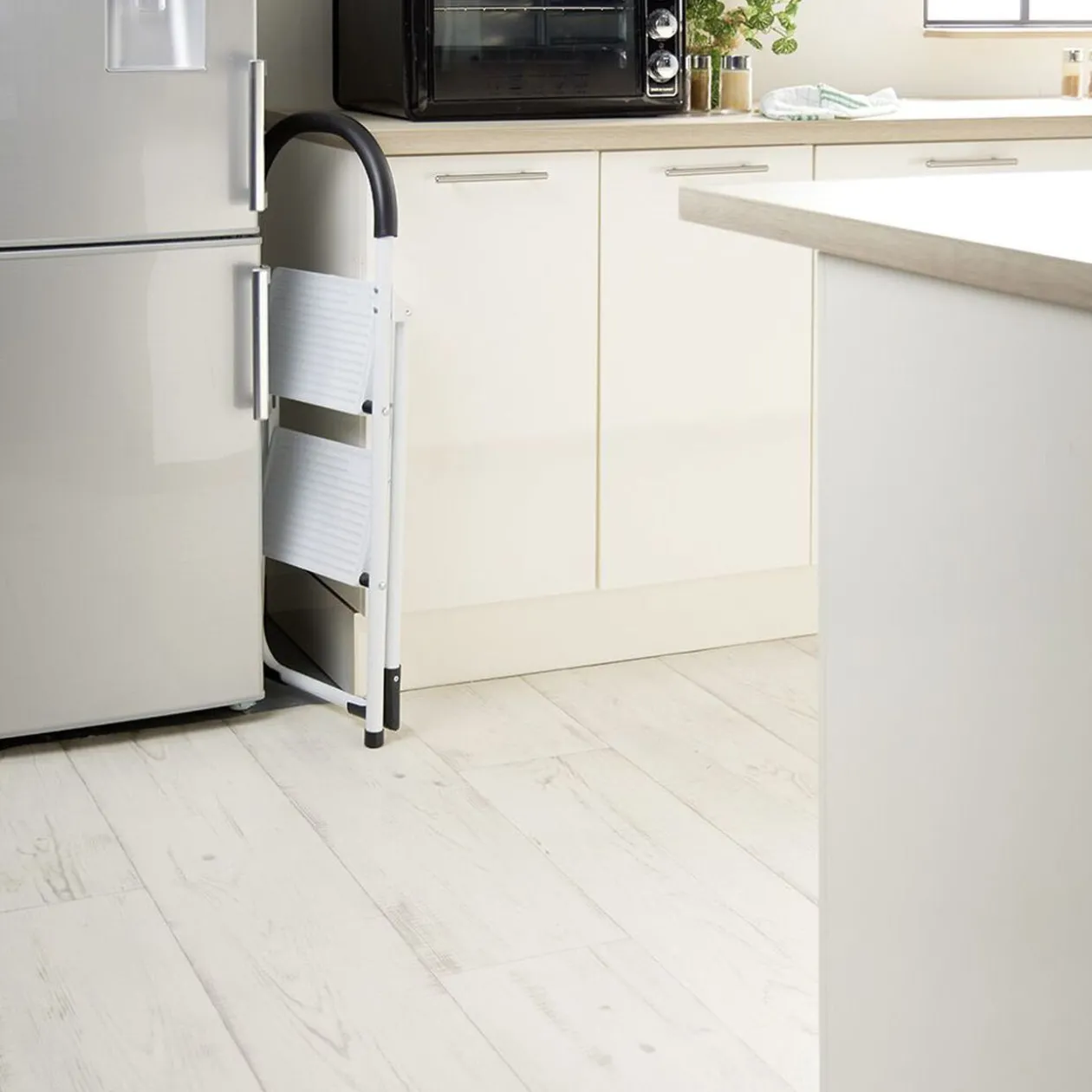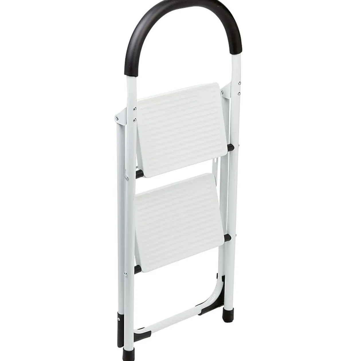 Escabeau pliant à 2 marches avec pieds antidérapants pour une parfaite stabilité.