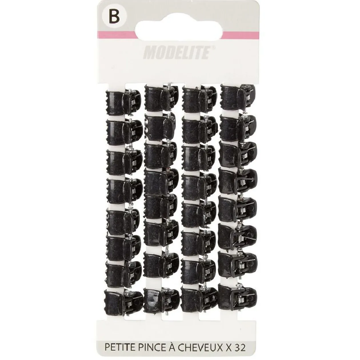 Lot de 32 minis pinces en plastique uni noir. Longueur :1 cm
