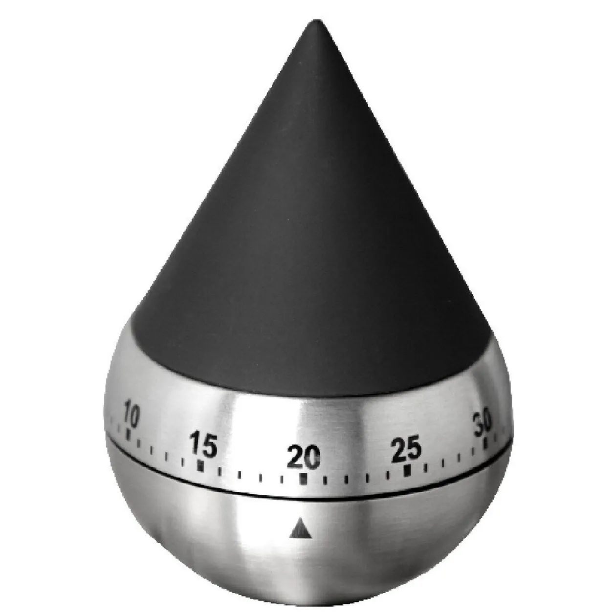Minuteur de 1 heure noir en inox avec base culbuto, dim. 6×9,5 cm.