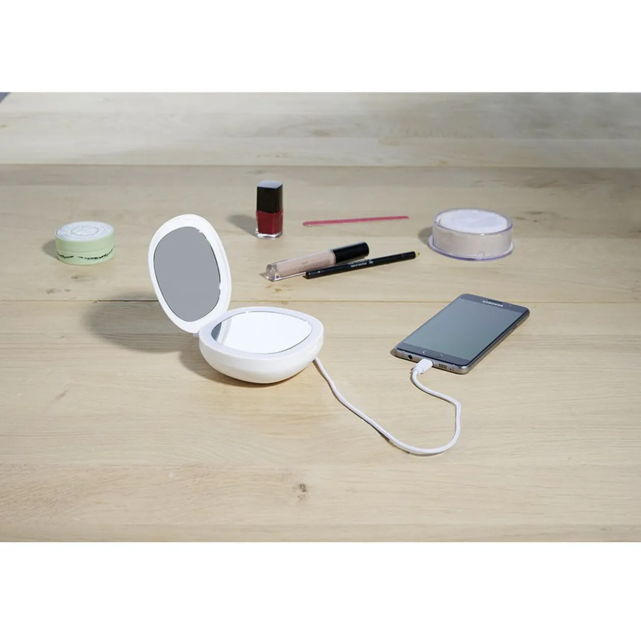 Miroir powerbank rond à led