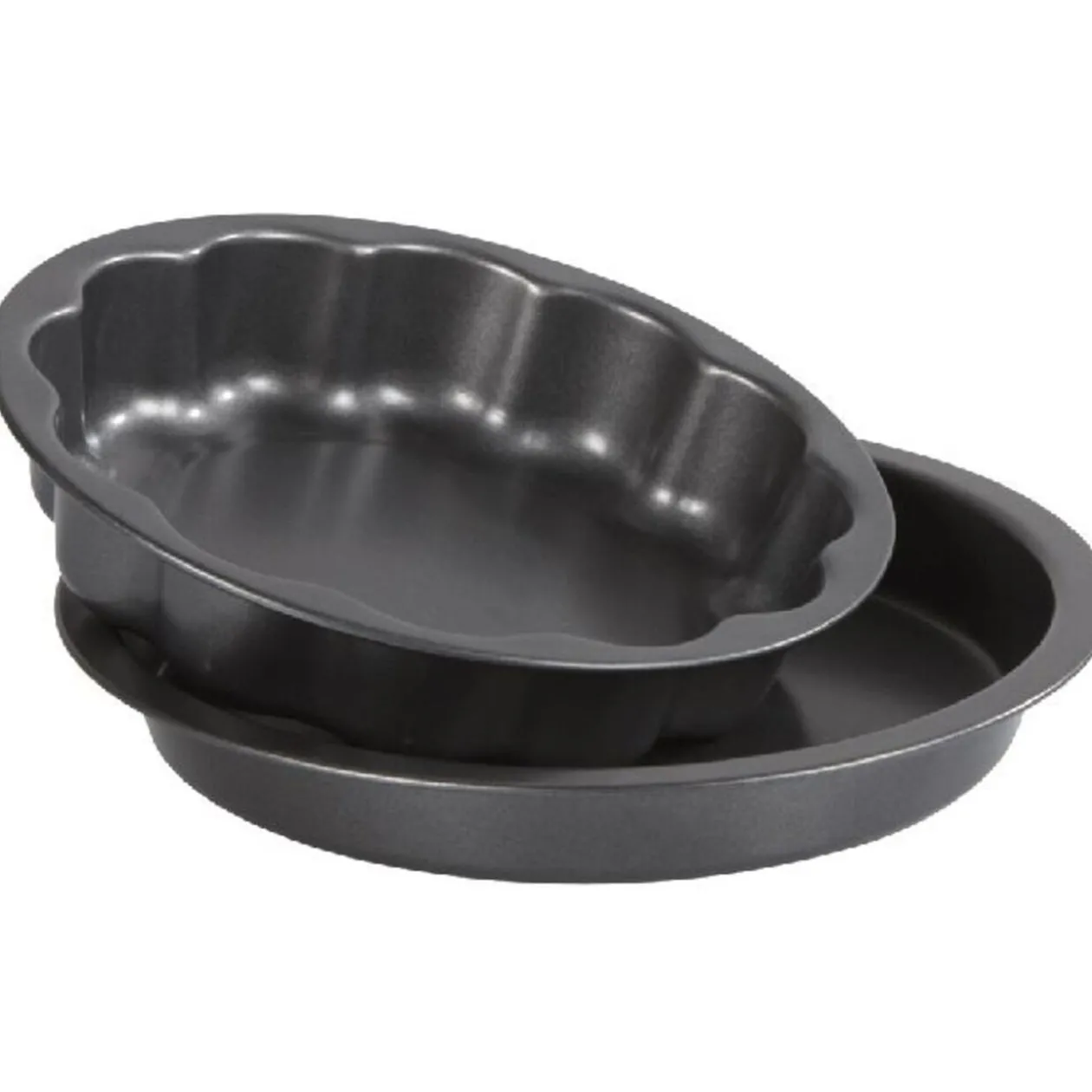 2 moules à gâteaux Ø 20 cm, h. 4 cm et Ø 23 cm, h. 3 cm, revêtement antiadhérant, métal.