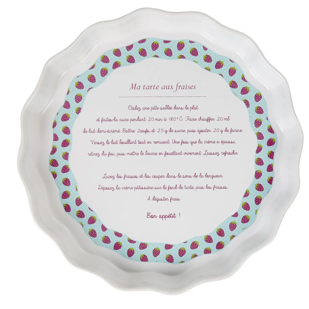 Moule à tarte en céramique de couleur blanche avec intérieur déco multicolore