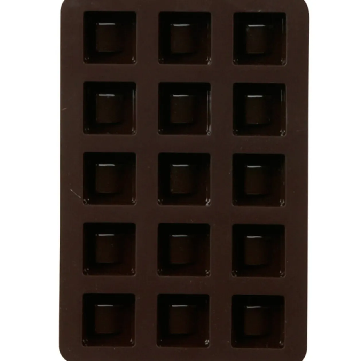 15 mini chocolats en silicone, dim. 2,5×2,5xh1 cm chacun, cuisson four et Micro-ondes, passe au lave-vaisselle. Diff. coloris, disponibilité selon arrivage.