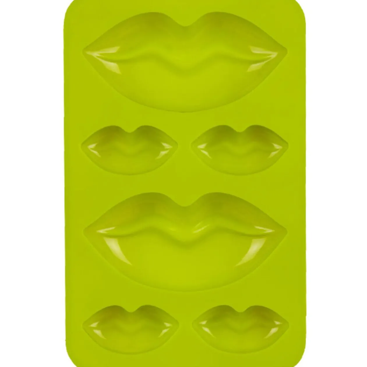 Moule en silicone de 6 bouches, planche dim. 17,5×11 cm, bouches dim. 9,5×4,5 cm et 4,5×2 cm. Diff. coloris, disponibilité selon arrivage.