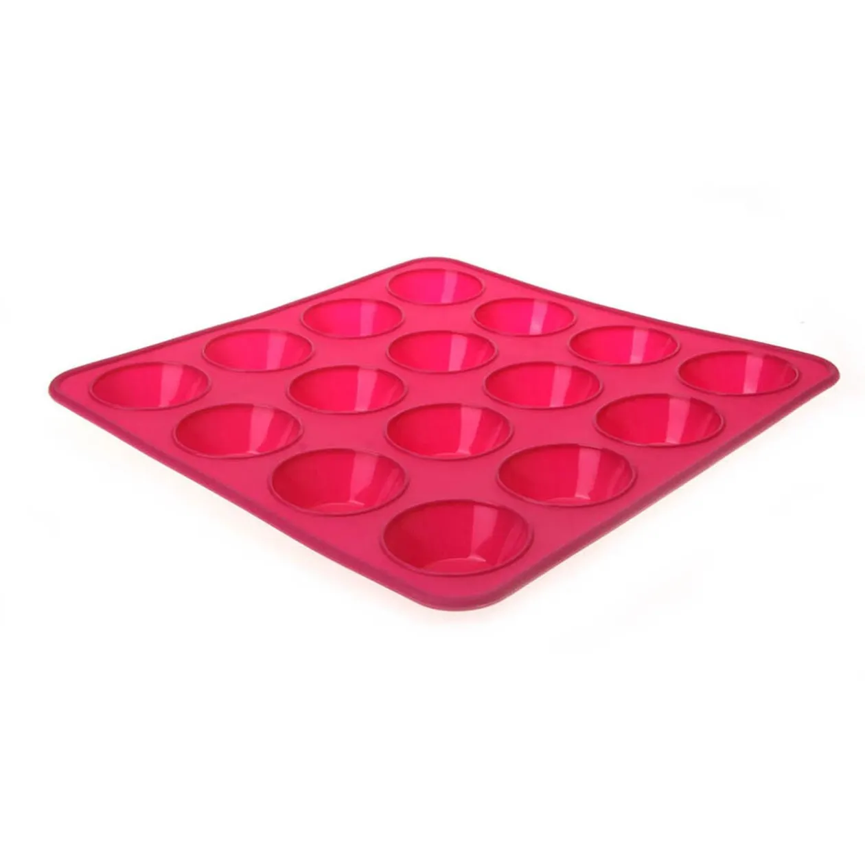 Moule en silicone rose avec 16 emplacements pour petits fours.
