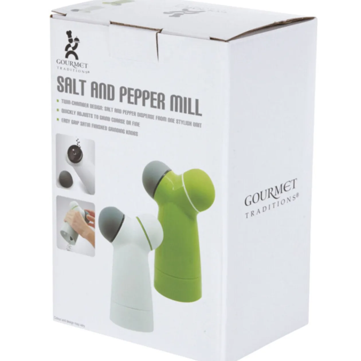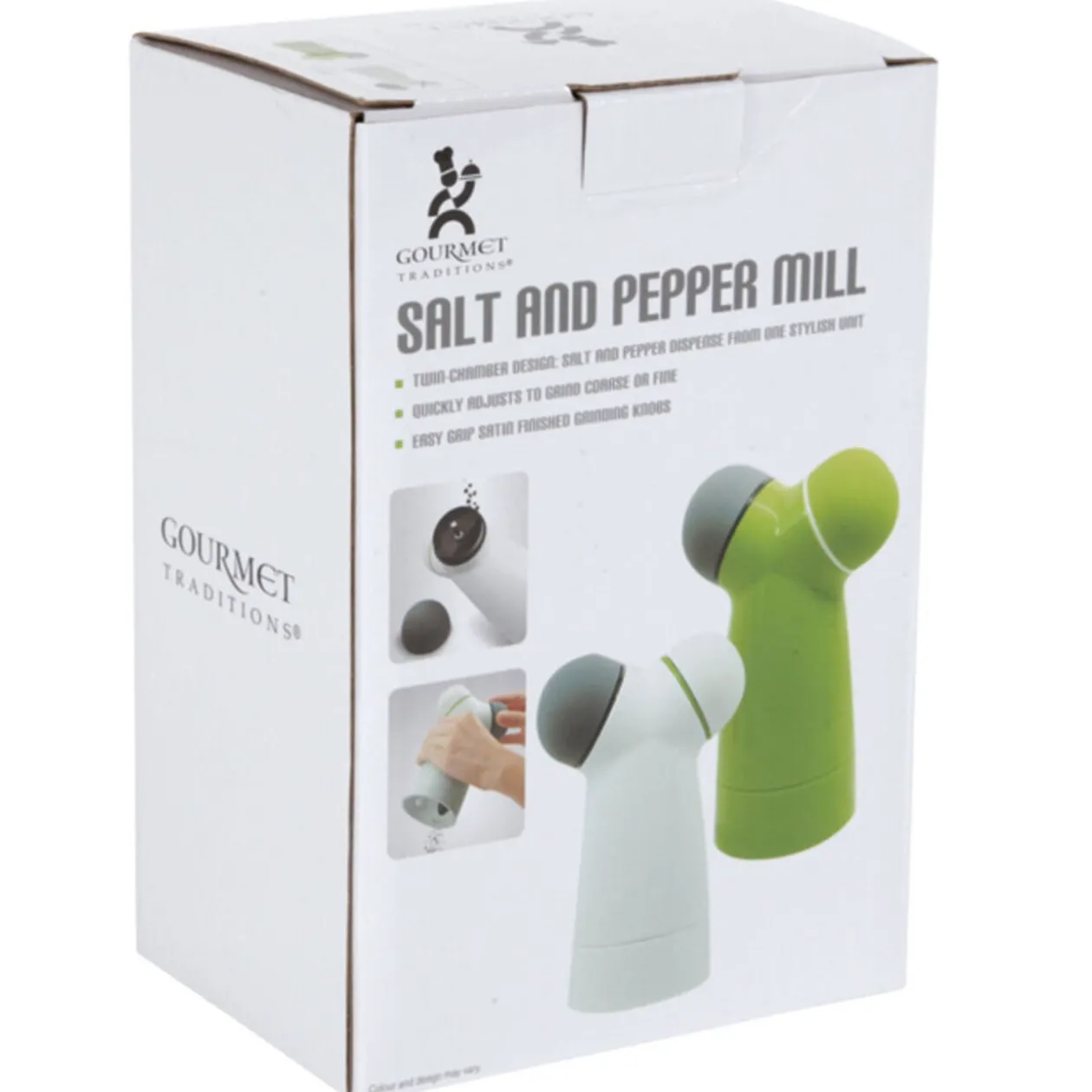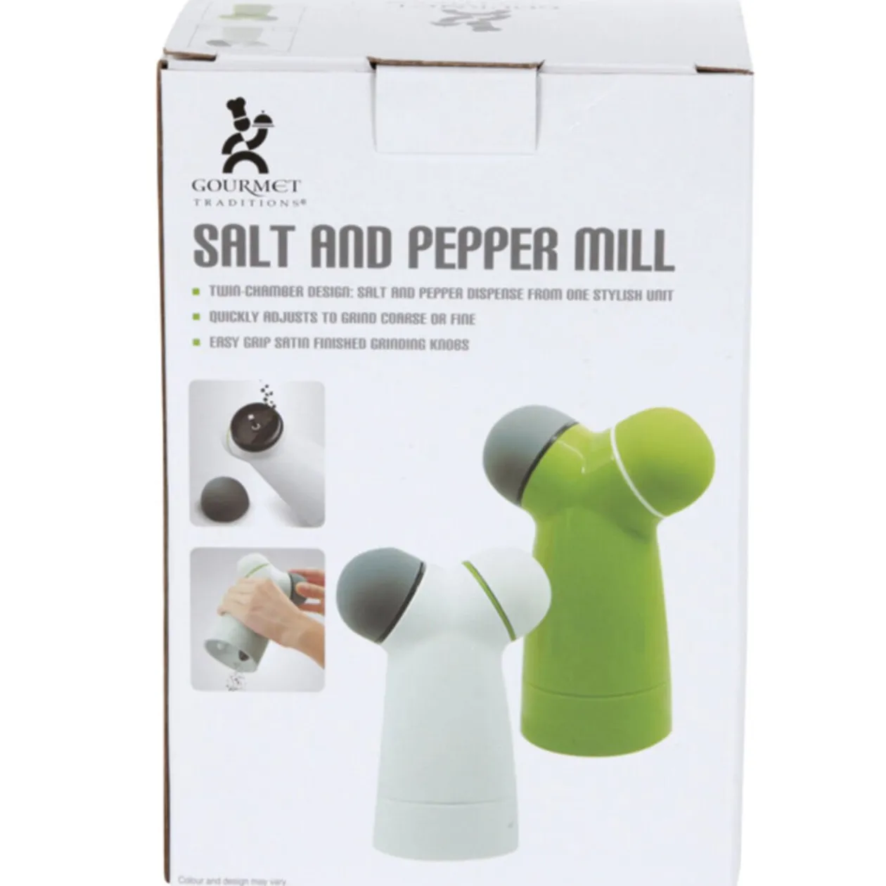 Moulin à sel et poivre, H. 15,5 cm, s’ajuste rapidement pour moudre des grains fins ou plus gros. Différents coloris, disponibilité selon arrivage..