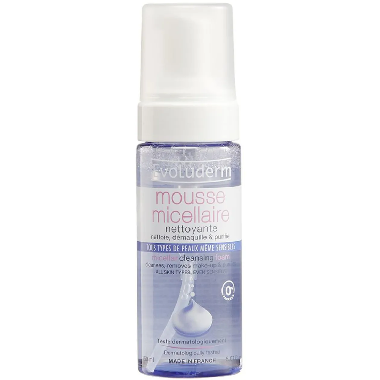 Mousse micellaire Evoluderm pour nettoyer, démaquiller et purifier votre visage en un seul geste.