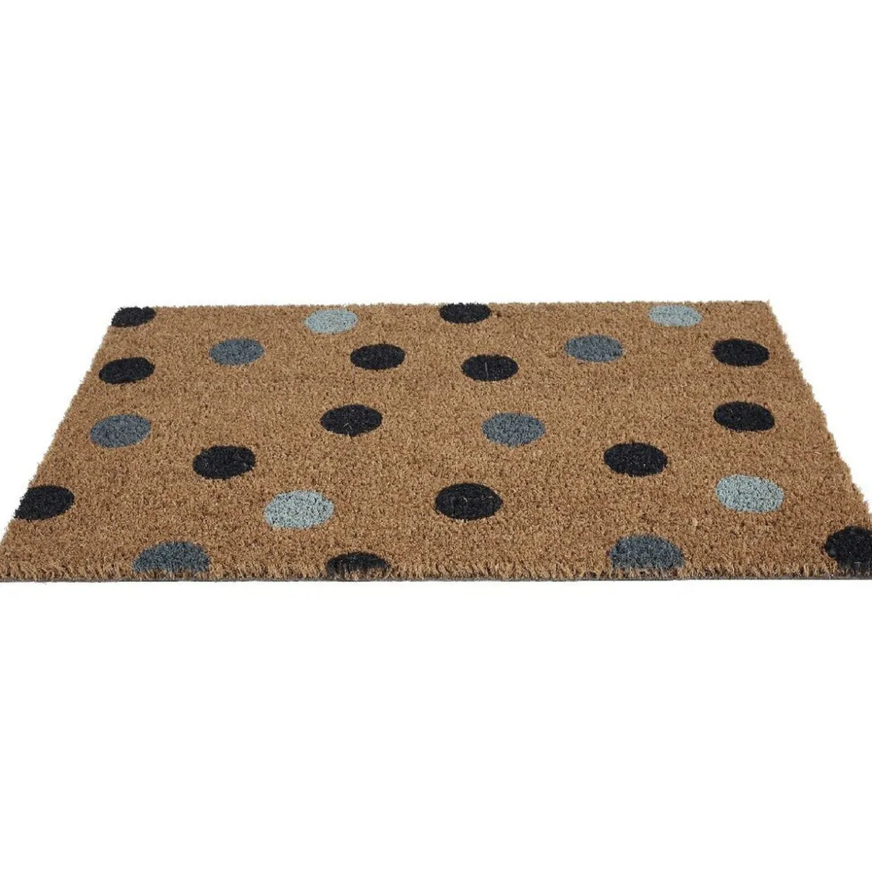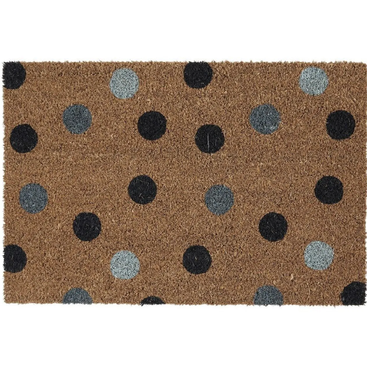 Optez pour ce paillasson en fibre de coco imprimé pois dans les tons bleus.
