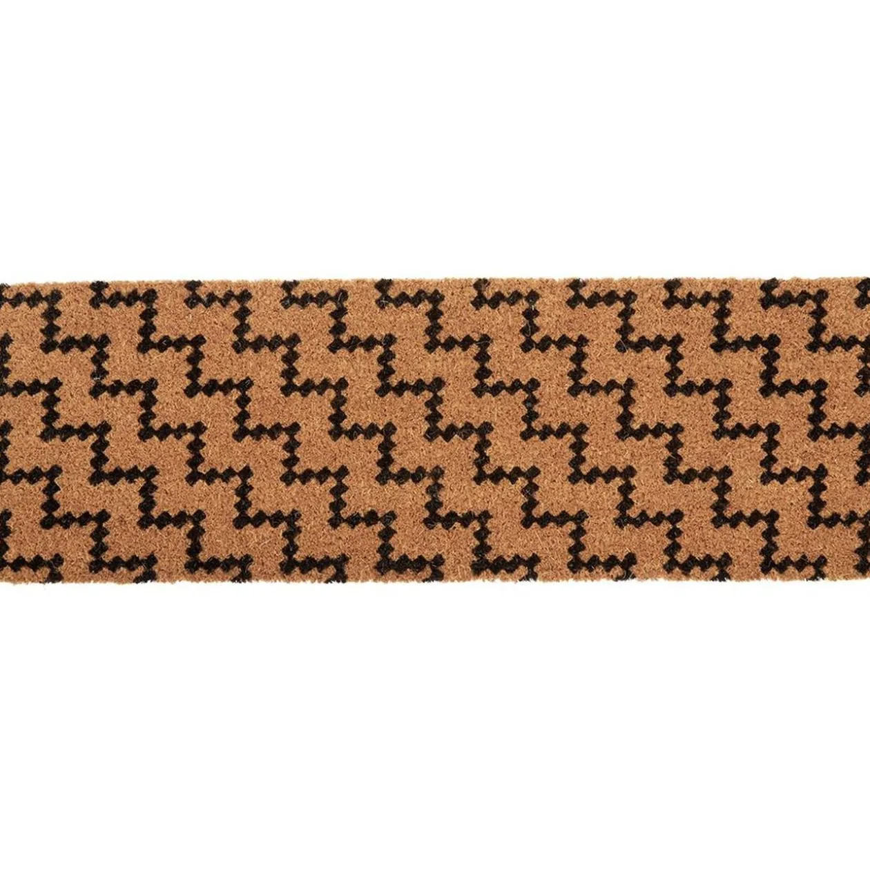 Paillasson en fibre de coco à motif graphique noir et naturel.