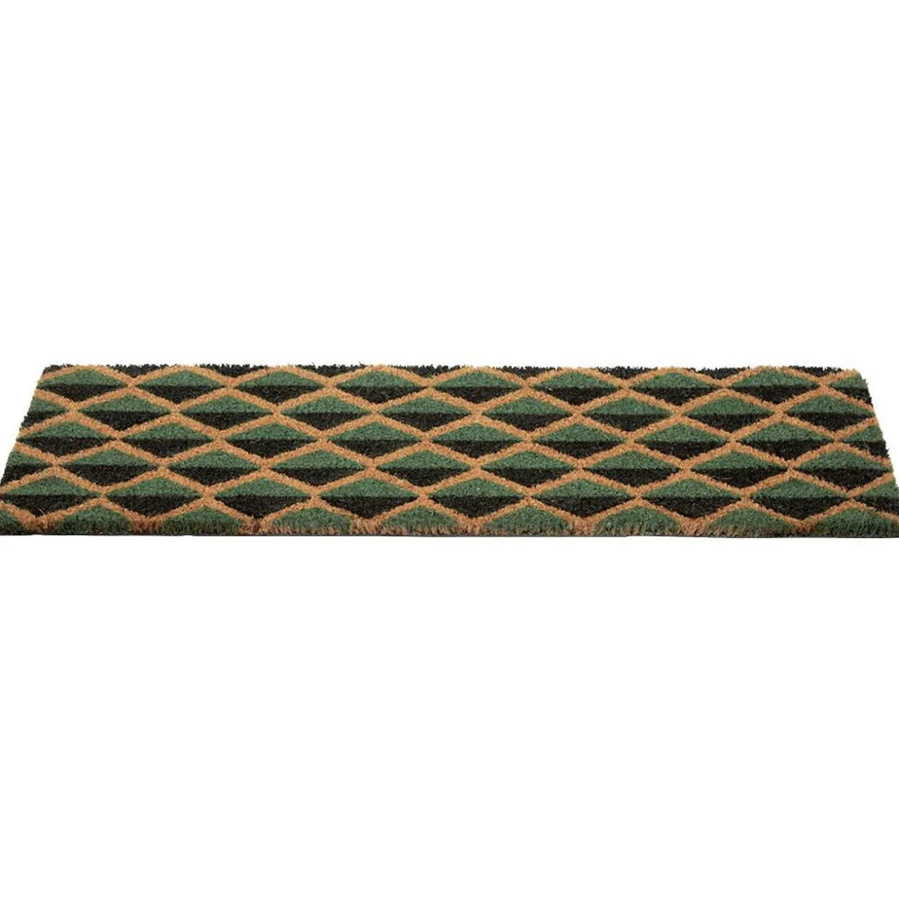 Paillasson en fibre de coco à motif losanges noir et gris.
