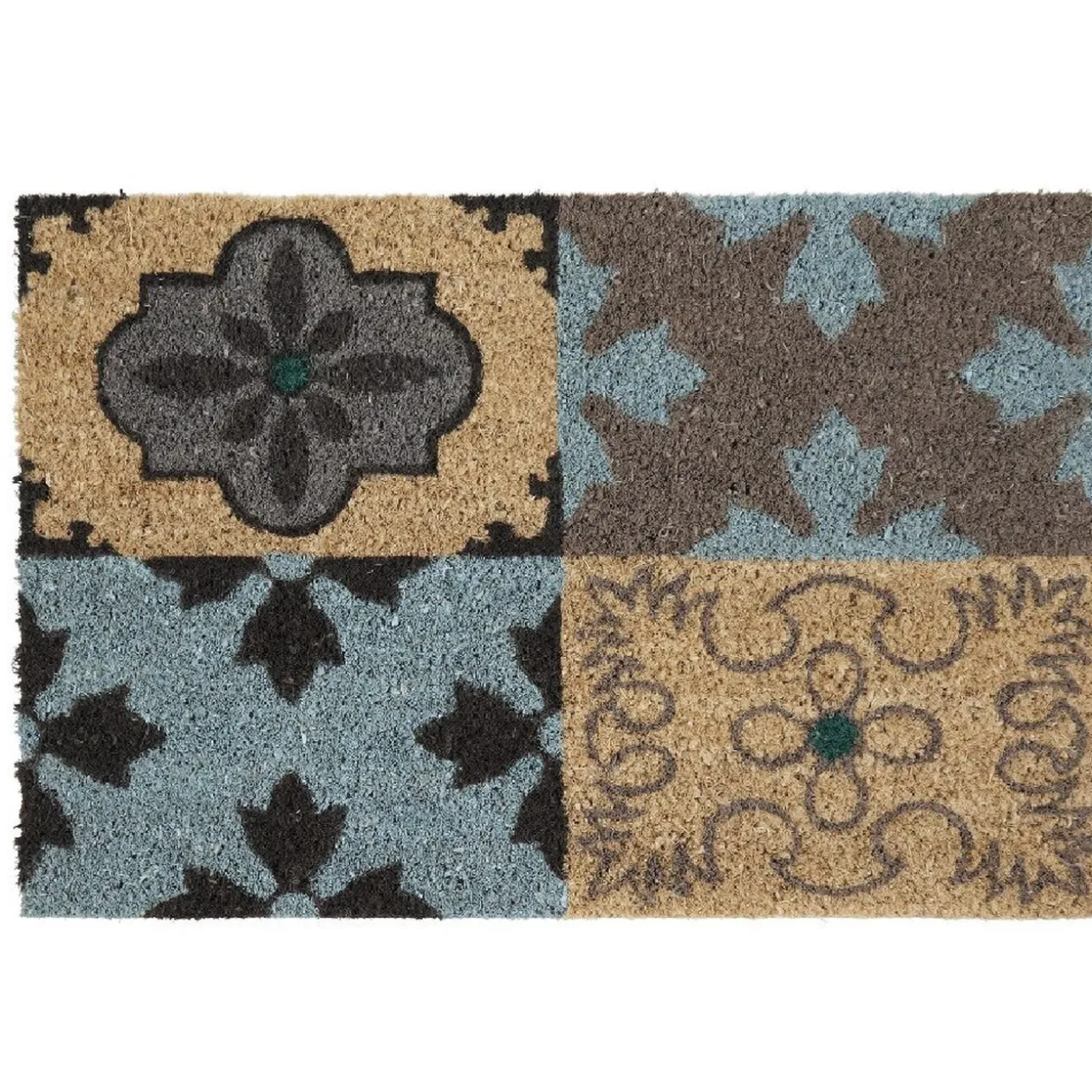 Apportez une ambiance déco sur le pas de votre porte avec ce paillasson en fibre de coco et au motif très tendance carreaux de ciment.