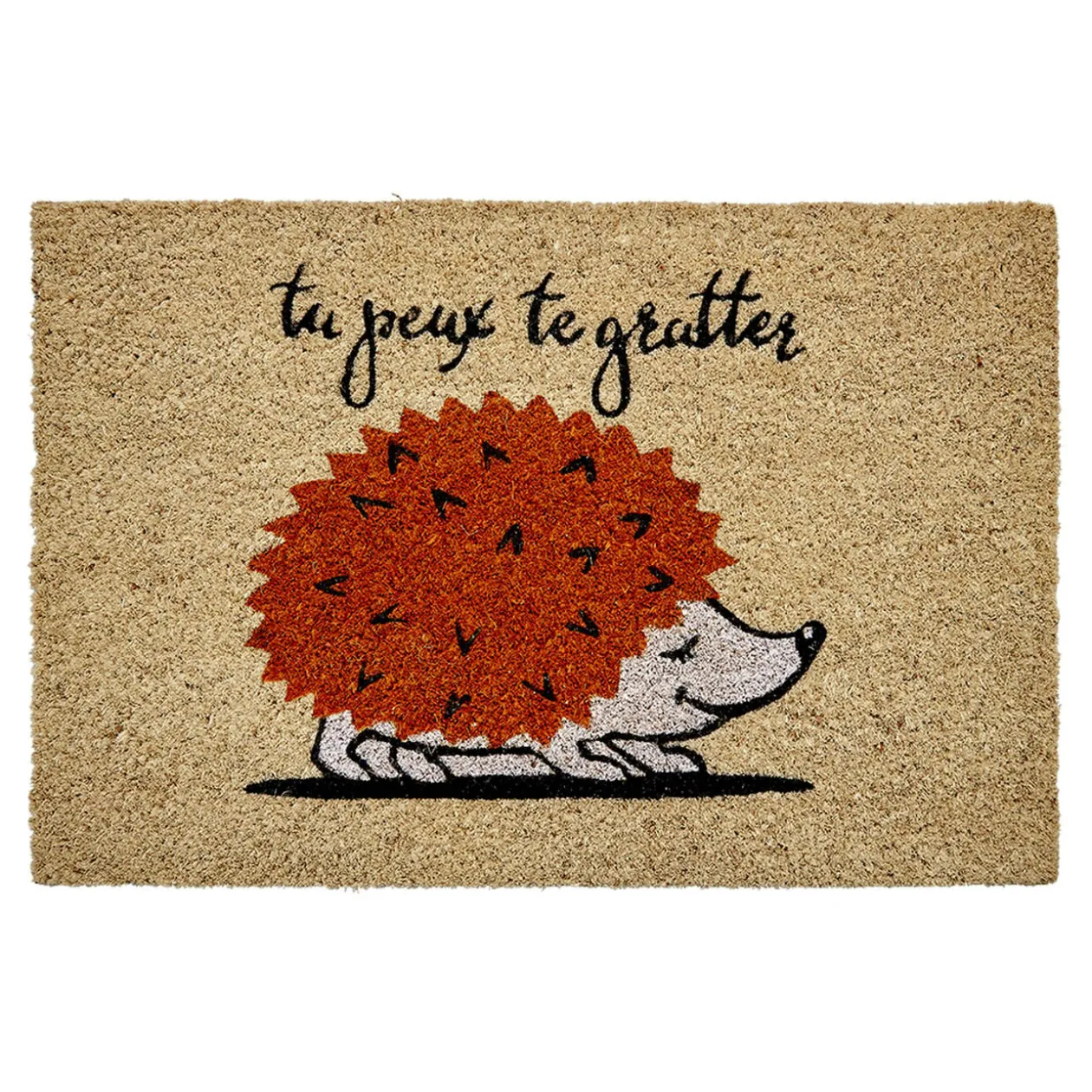 Apportez une touche d’originalité à votre entrée grâce à ce tapis avec son motif hérisson et inscription « tu peux te gratter ».