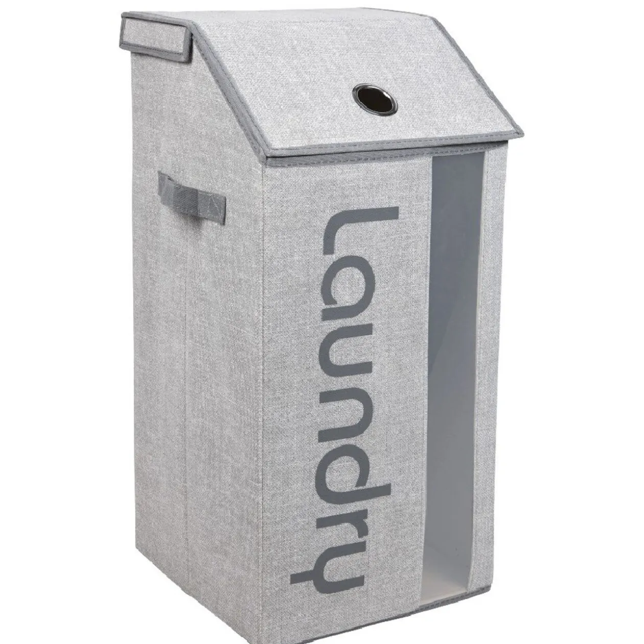 Panier à linge à fenêtre gris, contenu visible, dim. 30x30x60 cm, polypropylène.