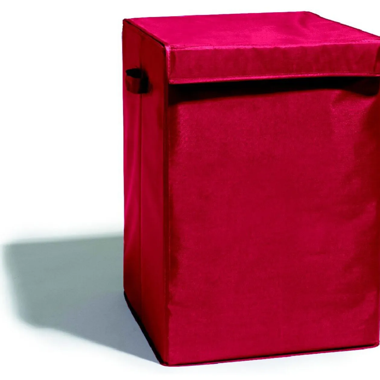 Panier à linge rouge, dim. 34,5×34,5×49,5 cm, carton et polyester.
