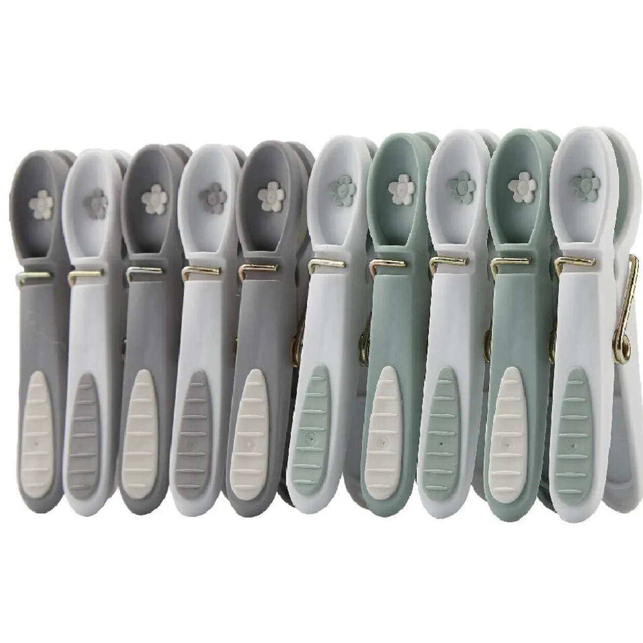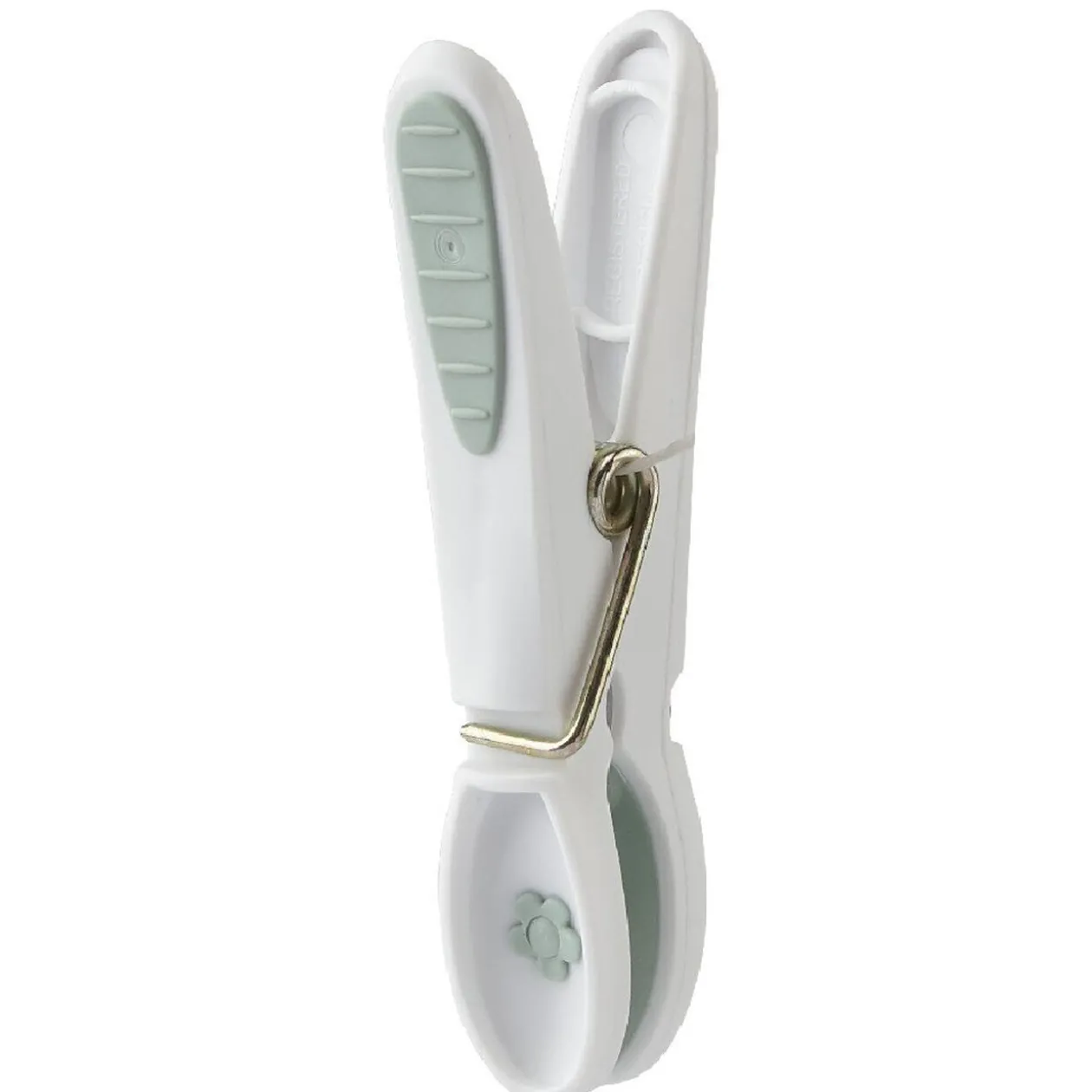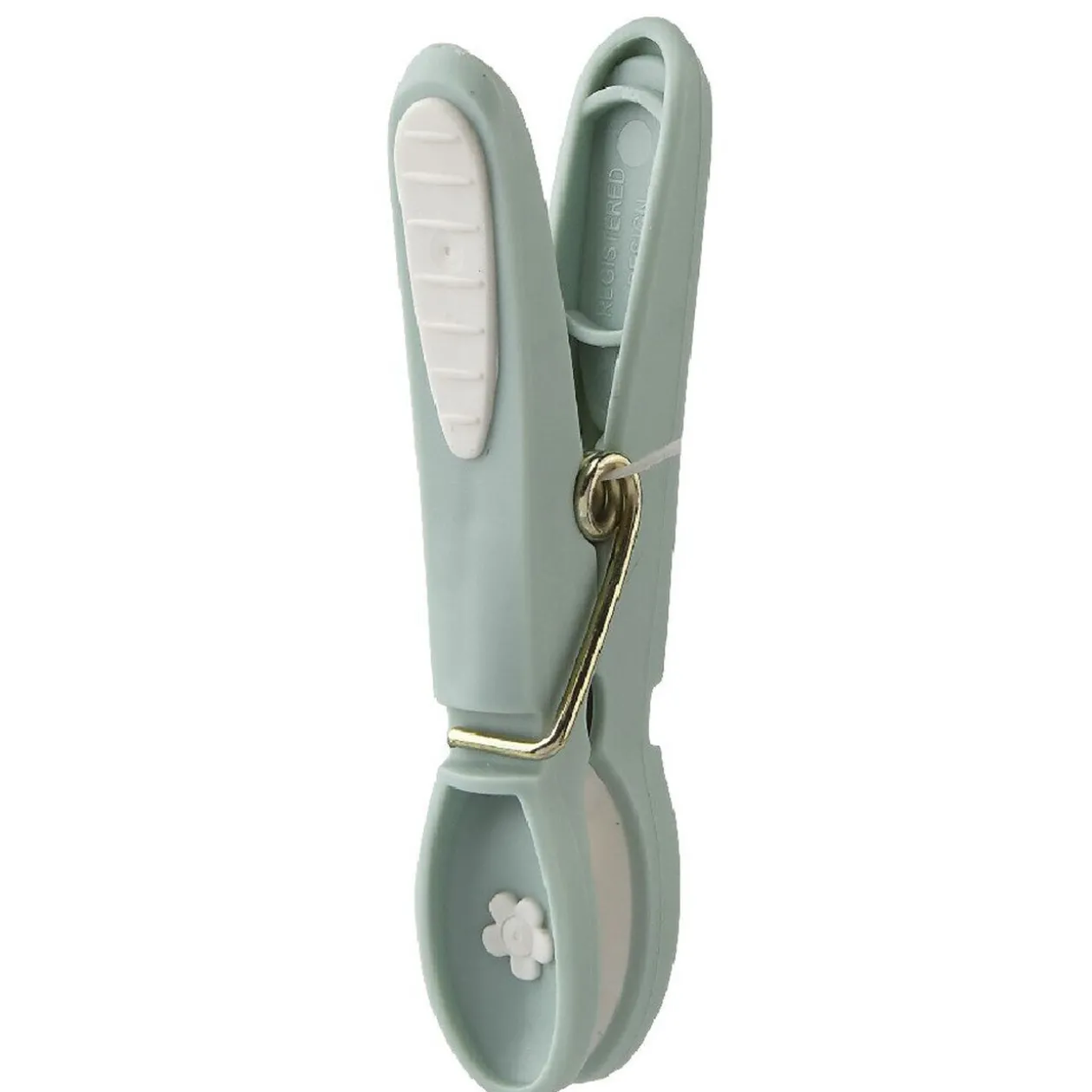 Panier avec 12 pinces à linge vert à suspendre à votre étendoir pour avoir toujours les pinces à linge sous la main.