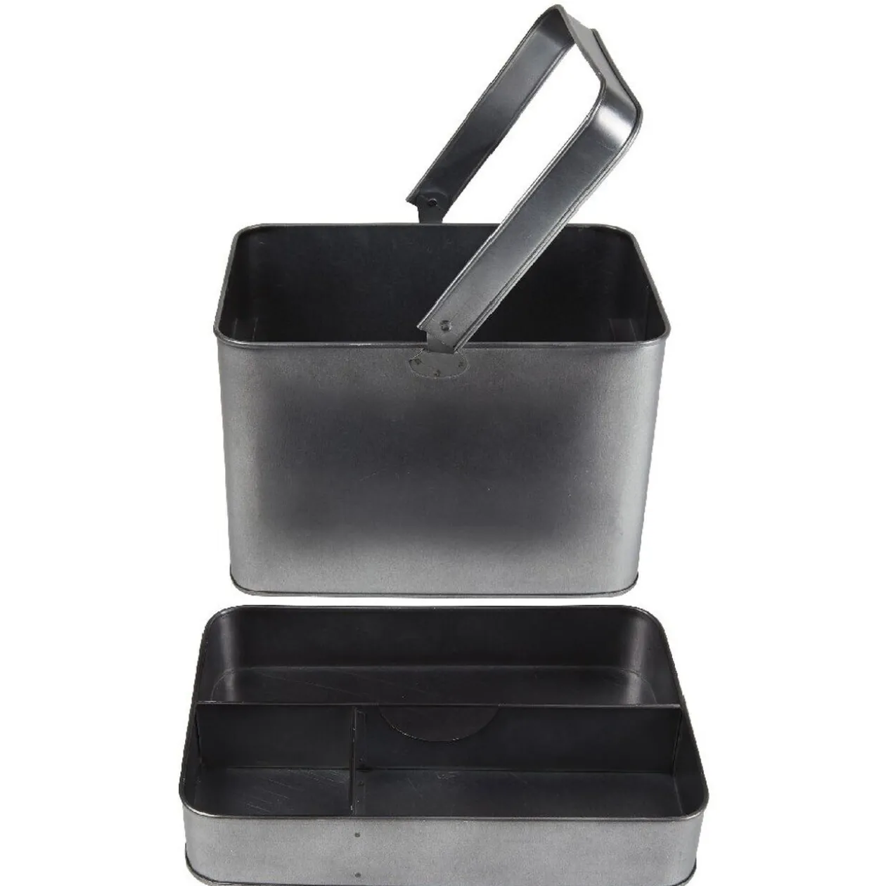 Apportez une touche déco vintage à votre intérieur, avec ce panier rigide en métal gris effet vieilli. Pratique, il est dotée d’un plateau amovible et compartimenté façon ménagère pour organiser tous les ustensiles et accessoires de votre choix.