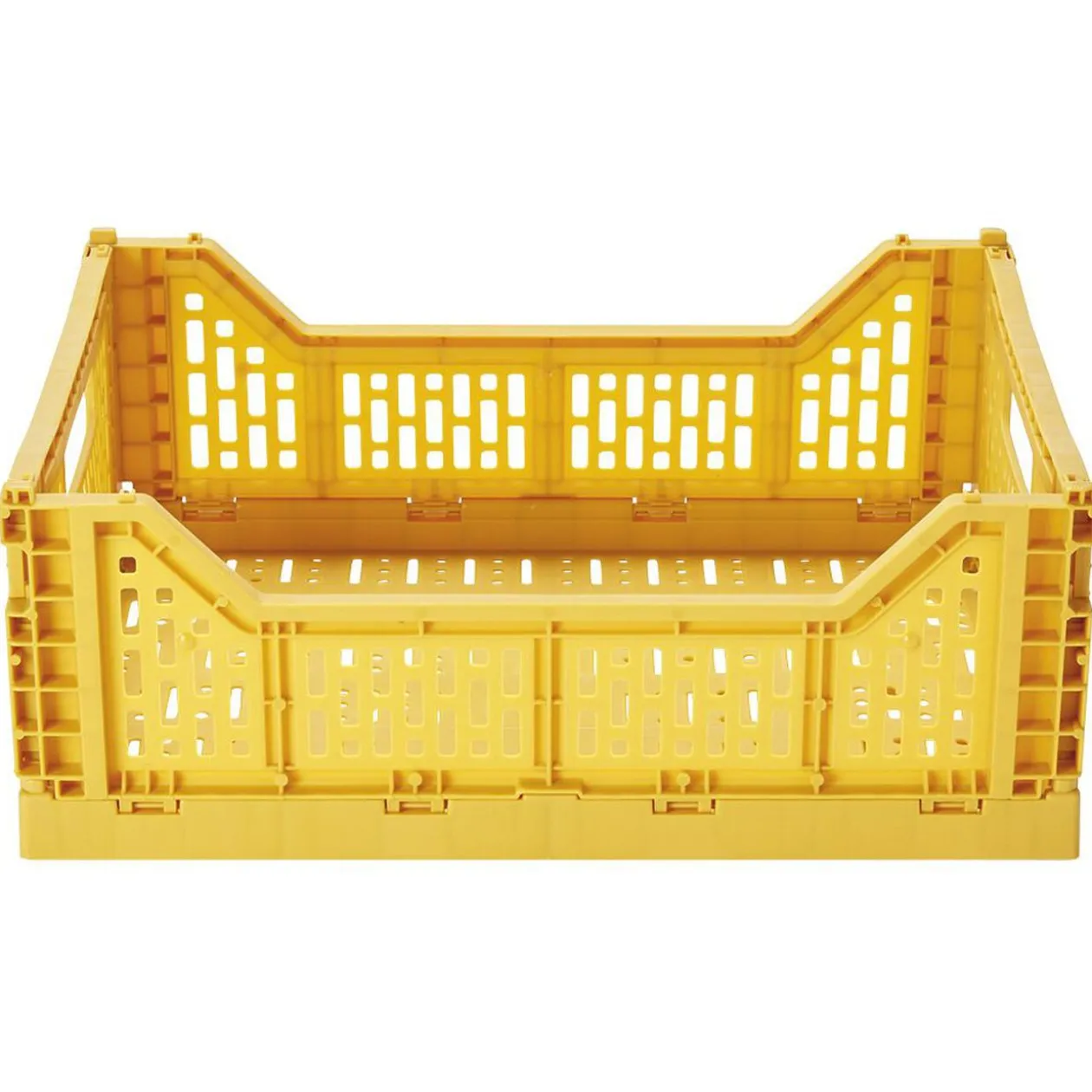 Panier pliant en plastique jaune d’une capacité de 15 litres. Peu encombrant et très pratique.