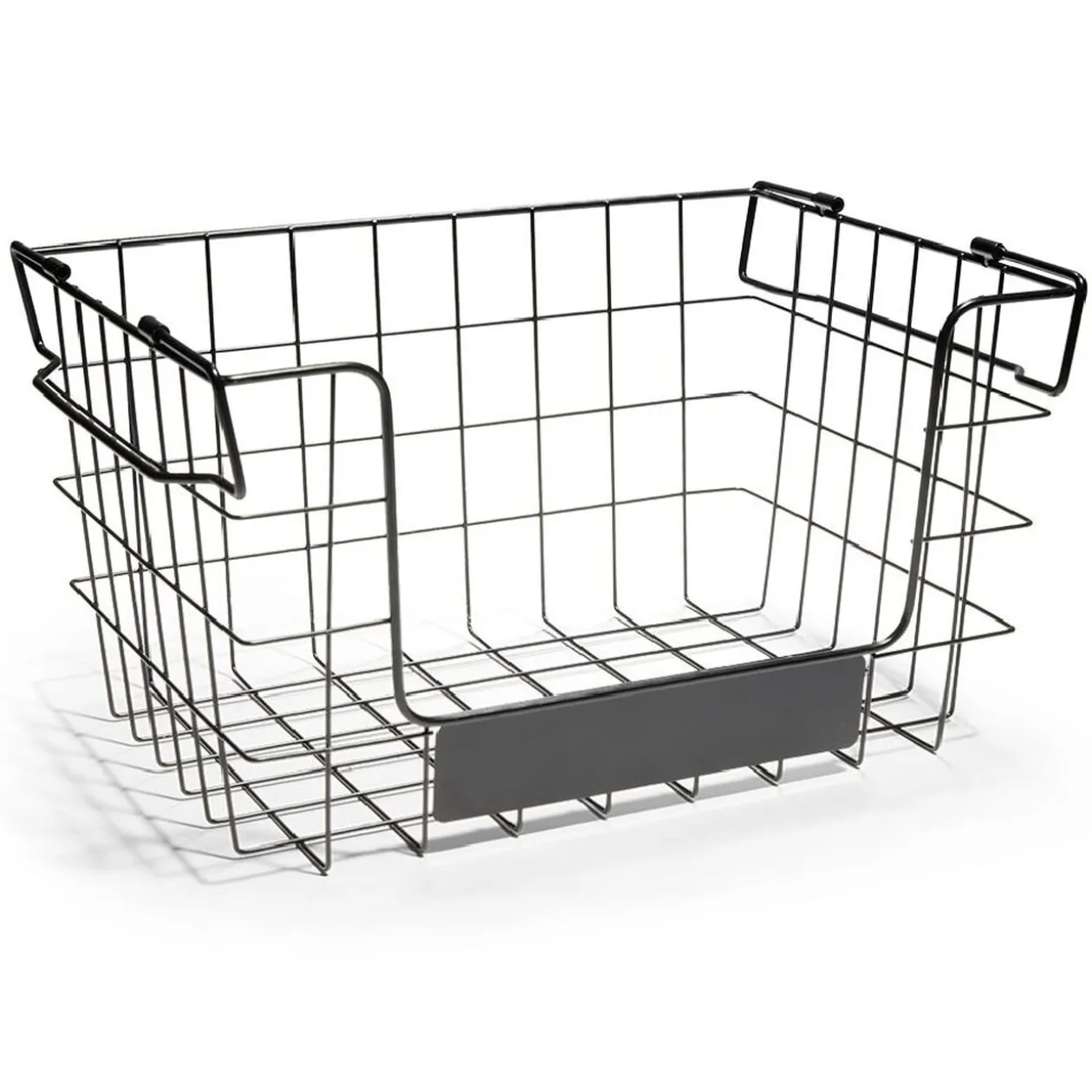Ce panier superposable en métal noir effet grillagé est idéal pour organiser divers objets tout en économisant de l’espace.