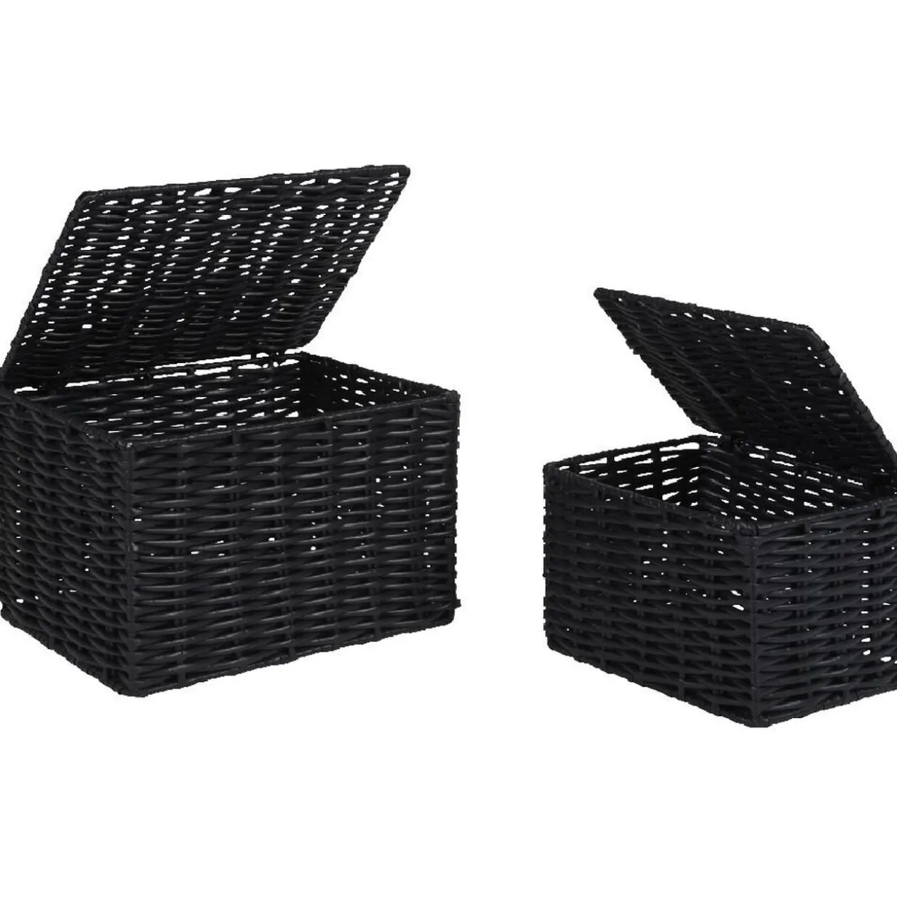2 panières noires avec couvercle, dim. 16x12x10 cm et 20x16x13 cm, plastique.