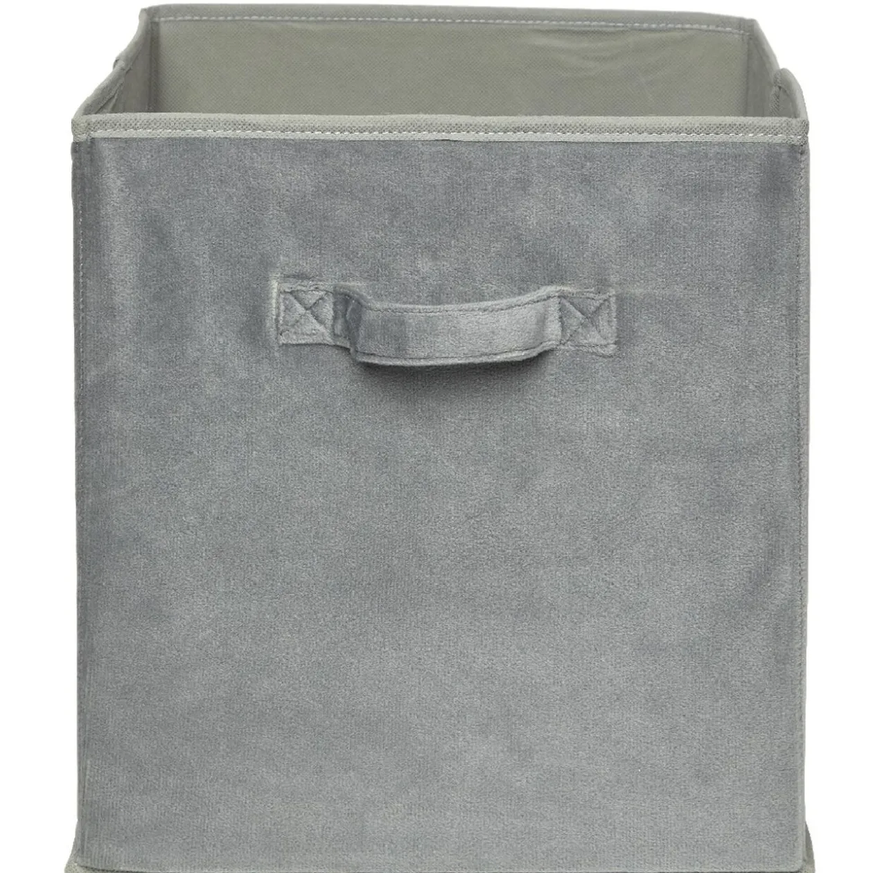 Dans une armoire, une étagère ou une case Box Cube, cette panière de rangement grise effet velours est idéale.
