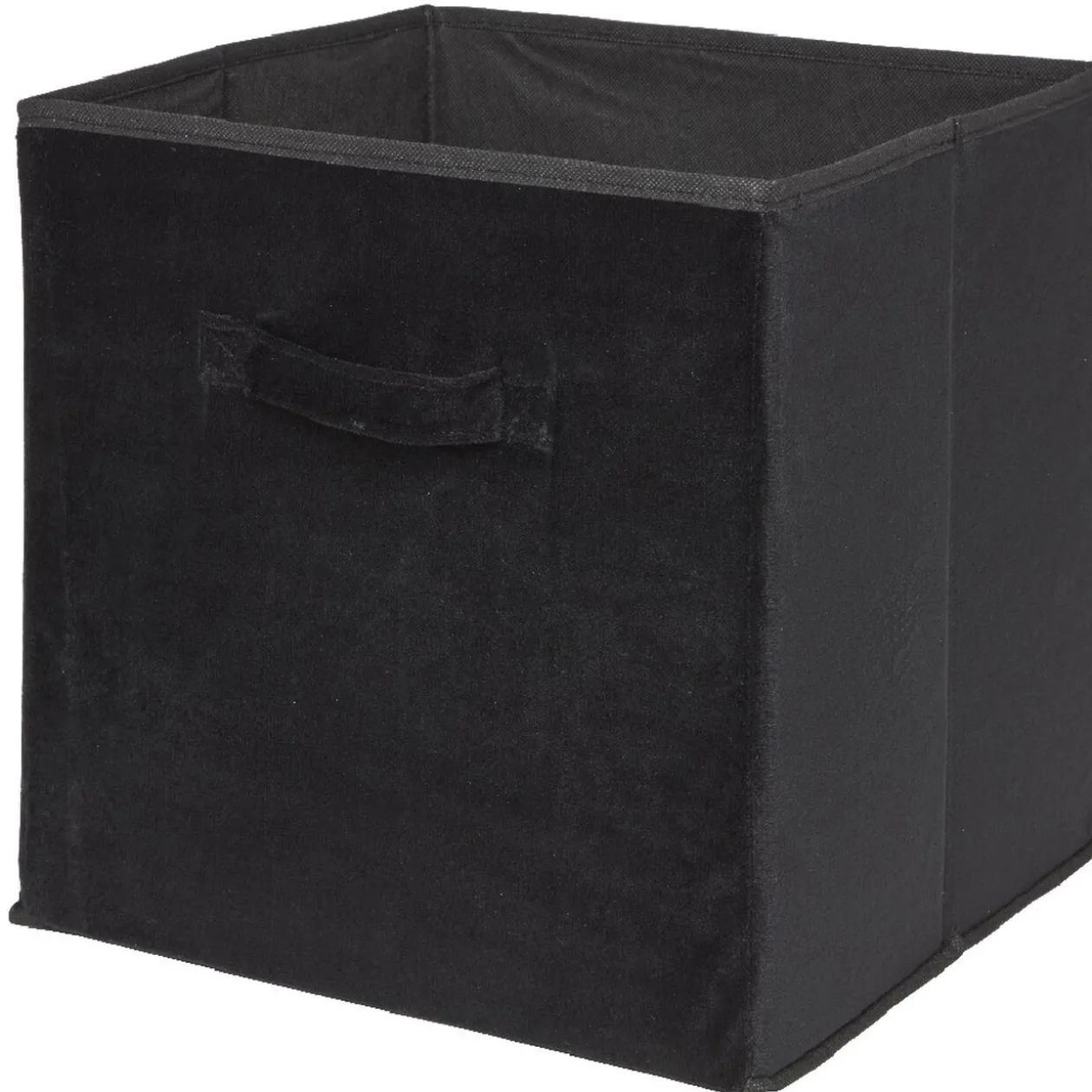 Posée au sol, disposée dans une armoire, une casee ou sur une étagère, cette panière de rangement Box Cube noire effet velours est idéale.